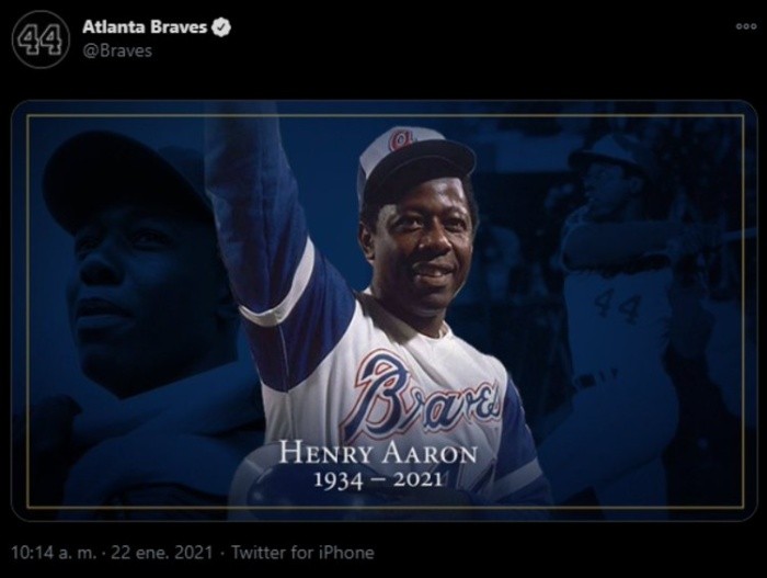 Este viernes, los Bravos de Atlanta anunciaron el fallecimiento de la estrella del beisbol, miembro del Salón de la Fama, y leyenda del equipo, Henry Louis ''Hank'' Aaron, a los 86 años.Los Braves de Atlanta indicaron que Aaron falleció en paz mientras dormía. No se ha revelado la causa de muerte."Hammerin' Hank" (''El Martillo Hank'', en español) fijó varias marcas de bateo en sus 23 años en Grandes Ligas, la mayoría con los Braves, incluyendo para remolcadas, hits de extrabases y bases totales. Pero el miembro del Salón de la Fama será recordado sobre todo por un swing.Aaron terminó su carrera con 755 jonrones, un total que Barry Bonds superó en 2007, aunque muchos todavía consideran a Aaron como el verdadero rey de jonrones.Henry Louis Aaron nació en Mobile, Alabama, el 5 de febrero de 1934, para sumarse a una larga lista de jugadores de esa ciudad -Satchel Paige, Willie McCovey, Billy Williams y Ozzie Smith, entre otros-.Aaron jugó 21 de sus 23 temporadas con los Braves, primero en Milwaukee, y luego en Atlanta cuando el equipo se mudó al sur en 1966. Terminó su carrera en Milwaukee, tras ser canjeado a los Cerveceros después de la temporada de 1974.Tras retirarse en 1976, Aaron se convirtió en una figura reverenciada y casi mítica, aunque nunca buscó los reflectores.El jardinero bateó al menos 40 bambinazos en ocho ocasiones, tuvo promedio de .305 en su carrera, ganó tres Guantes de Oro y sumó siete temporadas con al menos 20 bases robadas.OF