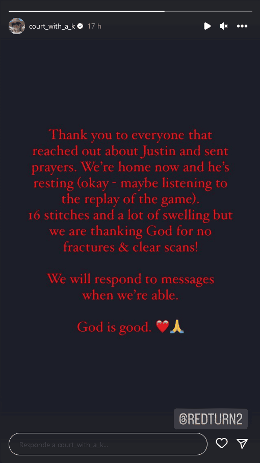 El infielder de los Red Sox de Boston de la MLB, Justin Turner, recibió un terrorífico pelotazo en la cara, por el cual necesitó 16 puntos de sutura.El momento de terror se vivió en el partido de pretemporada ante los Tigers de Detroit.El ex jugador de los Dodgers de Los Ángeles, de 38 años, recibió el bolazo tras un lanzamiento del derecho Matt Manning, y tras el impacto se dejó caer en el campo. De inmediato, según se vio en las transmisiones y videos que circulan en redes sociales, el personal médico de su equipo se acercó a Justin Turner para atenderlo, pero el beisbolista terminó abandonando con la cara ensangrentada. Más tarde, Kourtney, la esposa de Turner, publicó en sus redes sociales que Justin requirió de 16 puntos. Informó que aunque está muy hinchado, una resonancia demostró que no tiene fractura alguna."Está recibiendo tratamiento por una lesión en el tejido blando y lo están monitoreando por una posible conmoción", indicó también el equipo de Red Sox en un comunicado. "Justin está estable, alerta y de buen ánimo dadas las circunstancias.Dos veces All-Star de la MLB, Justin Turner recién firmó con los Red Sox, tras pasar los últimos 9 años con los Dodgers.OF
