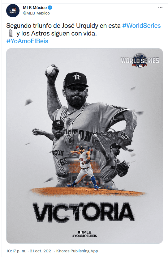 El lanzador mexicano José Urquidy hizo historia en la MLB cuando más lo necesitaba Houston Astros, y su labor como relevista le permitió al equipo eliminar su desventaja e imponerse por 9-5 a Atlanta Braves en el quinto partido de la Serie Mundial 2021 y evitar la eliminación.Con su trabajo de una entrada en blanco en la parte baja de la cuarta, que precedió al ataque de tres carreras de Astros en la primera mitad del quinto, Urquidy ganó su tercer partido de Serie Mundial y se convirtió en el lanzador nacido en Latinoamérica con más triunfos en la historia del Clásico de Otoño.Urquidy, de 26 años, que ganó por primera vez en la Serie Mundial del 2019 ante los Washington Nationals, y en el Segundo Partido de la serie ante los Braves, tiene ahora marca de 3-0.La victoria le permite convertirse en el lanzador latinoamericano con más triunfos al salir del grupo de dos triunfos que compartía con los cubanos Luis Tiant, Orlando Hernández, Liván Hernández y Miguel Cuéllar; los dominicanos Joaquín Andújar y José Rijo, el puertorriqueño J.C. Romero y el panameño Mariano Rivera.José Urquidy es, además, el sexto lanzador latinoamericano en ganar dos encuentros en la misma Serie Mundial, algo que ya habían logrado Tiant (Medias Rojas, 1975), Andújar (Cardenales, 1982), Rijo (Rojos, 1990), Liván Hernández (Marlins, 1997) y J.C. Romero (Filis, 2008).El lanzador con más partidos ganados en Series Mundiales, sin importar su lugar de nacimiento, es Whitey Ford con 10, todos para New York Yankees entre 1950 y 1962.En una situación de vida o muerte para los Astros y con los Braves a una victoria de coronarse, Urquidy entró a lanzar el domingo sustituyendo al dominicano Yimi García y Atlanta arriba por 5-4.Los Bravos se habían puesto por delante con parcial de 4-0 en el primero con un grand slam del jardinero Adam Duvall en el primer episodio, y tras racimos de dos de Houston en el segundo y el tercero, un jonrón del primera base Freddie Freeman los había puesto de nuevo al frente del marcador.Fue entonces cuando el veterano piloto de los Astros, Dusty Baker, entendió a la perfección que el lanzador idóneo para detener a los Braves no era otro que Urquidy y a él fue al que le entregó la pelota después que ya había sido el abridor en el Segundo Partido.La previsión de Baker era que el derecho de Mazatlán hubiese llegado al Sexto Partido con los días descanso para volver a abrir. Pero para llegar hasta allá, Houston tenía primero que ganar el domingo.El movimiento fue decisivo y puede que al final valga un título de la Serie Mundial."Sabía que José (Urquidy) era el lanzador ideal para superar la presión a la que el equipo se había puesto tras hacernos el Grand Slam al principio del partido", dijo Baker. "Su labor fue decisiva porque nos permitió reagruparnos y convencernos de que podíamos ganar, como así sucedió".Urquidy fue recibido por un sencillo del receptor Travis d'Arnaud, pero enseguida retiró en fila al campocorto Dansby Swanson con un elevado al central, al relevista A.J. Minter con un globito en intento de toque a las manos del receptor puertorriqueño Martín Maldonado y al cubano Jorge Soler con un rodado por segunda con el que forzaron a d'Arnaud en la intermedia.Así, Urquidy dejó todo servido para que sus compañeros voltearan la pizarra a los pocos minutos y -también con la ayuda del resto de los relevistas de los Astros que silenciaron a Atlanta el resto del encuentro- lo ayudaran a hacer historia en las Series Mundiales, pero sobre todo a mantener con vida a los Astros.OF