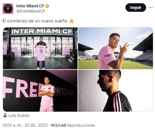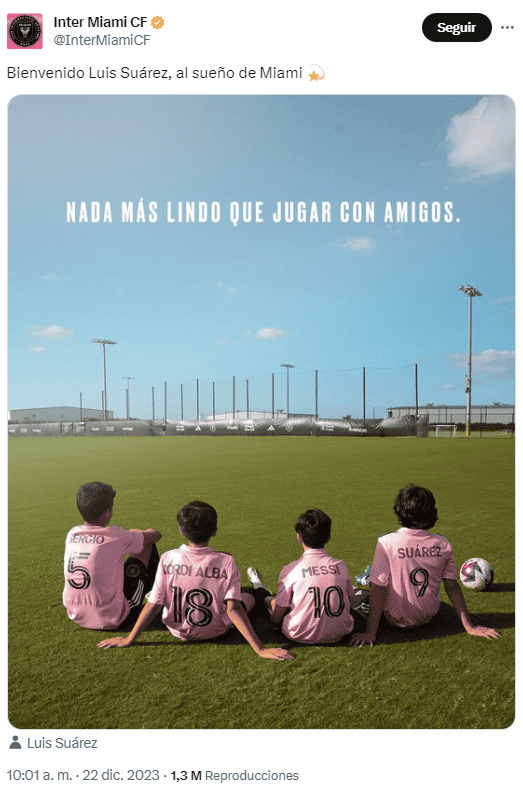El Inter Miami anunció hoy viernes que fichó a Luis Suárez, que en su llegada a la MLS se reunirá con su amigo Lionel Messi tras brillar juntos en el Barcelona.El atacante uruguayo, de 36 años, también se reencontrará en Florida con otros dos ilustres excompañeros del club español: Sergio Busquets y Jordi Alba.Luis Suárez, que recientemente regresó a la selección uruguaya, competirá así en Estados Unidos en 2024, el año en el que el país de las barras y estrellas organizará la Copa América."Bienvenido, Luis Suárez, al sueño de Miami", escribió el conjunto de rosa en su cuenta oficial de X para darle la bienvenida al ariete tras semanas en las que su incorporación se había dado prácticamente por hecha.El contrato de Suárez con su nuevo equipo será por un año.El Inter Miami, que tiene entre sus propietarios a David Beckham, acompañó el anuncio con una foto de cuatro niños sentados de espaldas con los dorsales 9 (Suárez), 10 (Messi), 18 (Jordi Alba) y 5 (Sergio) y el siguiente mensaje: "Nada más lindo que jugar con amigos".Suárez y Messi, sin olvidar al brasileño Neymar, formaron un tridente letal en el Barcelona, que se proclamó campeón de la Champions League y del Mundial de Clubes en la temporada 2014-2015."El pistolero" jugó en el conjunto blaugrana seis temporadas (2014-2020) en las que anotó 197 goles y dio 100 asistencias como uno de los socios preferidos de Messi.Llega además a una MLS en la que hay numerosos jugadores uruguayos destacados como Diego Rossi (del vigente campeón Columbus Crew), Facundo Torres (Orlando City), César Araujo (Orlando City), Martín Cáceres (LA Galaxy), Diego Fagúndez (LA Galaxy), Gastón Brugman (LA Galaxy), Santiago Rodríguez (New York City) y Cristian Olivera (Los Angeles FC).Luis Suárez jugó la pasada temporada en el Gremio brasileño, donde marcó 29 goles en 54 partidos.Messi aterrizó este verano en el Inter Miami y, de la mano de los también recién llegados por entonces Busquets y Alba, conquistó el primer título de la historia para el conjunto de Florida con la Leagues Cup.No obstante, una lesión del delantero argentino le hizo perderse varios partidos de la temporada regular de la MLS y el Inter Miami se quedó fuera del 'playoff' de la MLS Cup.El Inter Miami protagonizará el partido inaugural de la temporada 2024 de la MLS con un enfrentamiento en casa ante el Real Salt Lake el próximo 21 de febrero.*Mantente al día con las noticias, únete a nuestro canal de WhatsAppOF