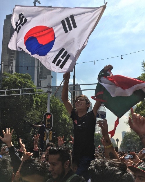 "Goooool de Corea, papá", gritó eufórico un aficionado que festejó como si fuera de México, por la sencilla razón de que los seleccionados de aquella nación asiática le dieron el pase al Tri a los octavos de final de la Copa Mundial Rusia 2018. Los miles de aficionados que se dieron cita en el Ángel de la Independencia terminaron por cantar "Corea, Corea, Corea...", al tiempo que era ondeada la bandera mexicana y la surcoreana.Mediante una megapantalla instalada al pie de la hermosa columna del Ángel de la Independencia, los fans siguieron el transcurrir del encuentro y se lamentaron cuando Carlos Vela falló en la primera oportunidad, y sufrieron cuando cayó el primer gol sueco, y lanzaron "madres" porque el árbitro se negó a pedir la revisión del video para corregir el penal en contra de los tricolores.En la transmisión, los comentaristas del encuentro empezaron a hablar del cero a cero de Corea del Sur ante el campeón del mundo Alemania y el significado para México, porque eso, a pesar de perder, le daba el boleto para la siguiente ronda.Entonces apareció un joven matrimonio surcoreano con su bandera, la empezaron a ondear y, entonces, los presentes la vieron y la hicieron suya, como una salvación para continuar con el sueño mundialista.El "Corea, Corea, Corea ..." se escuchó fuerte, y la angustia continuó con el autogol en la meta de Guillermo Ochoa, y luego todo se centró, a través de los comentaristas en la megapantalla, en lo que hacían los surcoreanos ante los alemanes, y llegó el gol de los asiáticos y se gritó como si fuera de los mexicanos."Gol de Corea, papá", gritó un aficionado embriagado de júbilo, la bandera surcoreana siguió siendo ondeada; los minutos transcurrieron; terminó el juego de México con la derrota 3-0 ante Suecia y se esperó con ansiedad el final del partido de los surcoreanos y nuevamente la explosión de éxtasis por la victoria de los asiáticos.Los dueños de la bandera surcoreana fueron más rodeados por las cámaras fotográficas, de video y celulares; fueron felicitados, fotografiados y el grito de "Corea, Corea, Corea..." fue más estruendoso, en agradecimiento por mitigar la derrota y dar a México el pase a octavos de final en la Copa del Mundo.Gracias a Surcorea no hubo caras marchitas ni lágrimas ni nada por el estilo, aunque sí desilusión por la derrota, pero el grupo Merenglas se encargó de recobrar la mayor alegría.GC