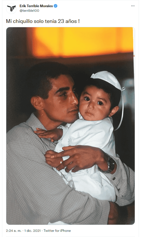 Uno de los grandes boxeadores en la historia de México, Erik "Terrible" Morales, dio a conocer en sus redes sociales que su hijo, José Fernando Morales Anaya, perdió la vida a los 23 años de edad.El excampeón del peso supergallo del CMB recordó a su hijo con una serie de mensajes en Twitter, acompañados de fotografías, en donde desea su descanso; sin embargo, aún no se han dado a conocer los detalles del fallecimiento de su hijo."Mi chiquillo solo tenía 23 años!" y "Te amo mi Fer que dios te cuide y te tenga en su gloria. José Fernando Morales Anaya ! Mi Ferny", fueron algunos de los mensajes que escribió el ex boxeador.De igual forma, algunos no dejaron pasar la oportunidad para mostrar su solidaridad con el "Terrible", tal es el caso del presidente del CMB Mauricio Sulaimán.OF