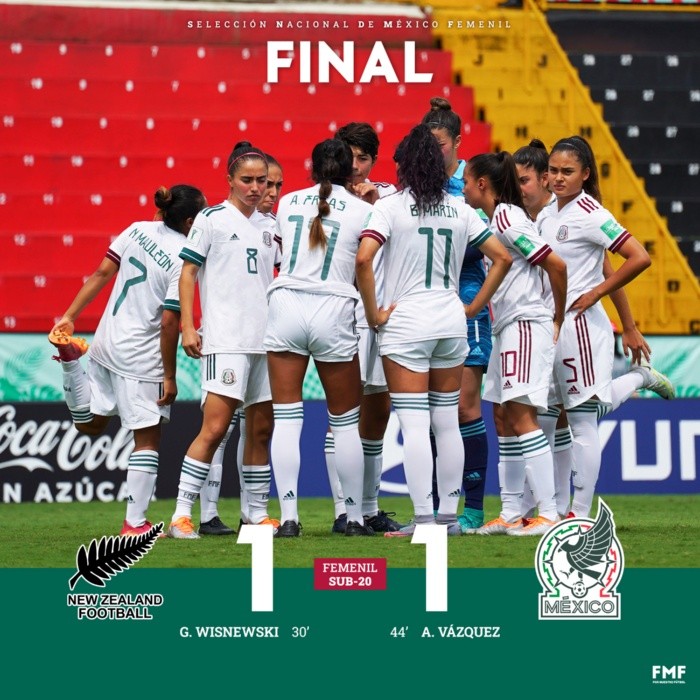Atrás han quedado los escándalos que rodearon las semanas previas a la Selección Mexicana Femenil Sub-20 con el despido del cuerpo técnico encabezado por Maribel Domínguez y el Tri comenzó su andar por el Mundial de la categoría con un amargo empate ante su similar de Nueva Zelanda. El marcador terminó igualado a un gol por bando y las dirigidas por Ana Galindo tendrán que conformarse con un punto en un partido en el que merecieron más. Pero como siempre se suele decir: el futbol no es de merecimientos. El Tri Femenil comenzó perdiendo el encuentro luego de que a los 30 minutos de juego Wisnewski adelantó a las neozelandesas. En la agonía del primer tiempo, apareció Anette Vázquez al '44 para igualar el marcador y evitar que la selección azteca se fuera con desventaja al descanso. La segunda mitad fue un dominio mexicano absoluto, pero la falta de contundencia provocó que el Tri se fuera con el empate en las manos. Al final del partido, en los últimos 15 minutos, las mexicanas tuvieron oportunidades claras, pero no las supieron aprovechar. El próximo partido para la Selección Mexicana Femenil Sub-20 será el próximo sábado cuando se midan a su similar de Colombia quien viene de ganarle 1-0 a Alemania. Será un duelo vital para las aspiraciones del Tricolor. JL
