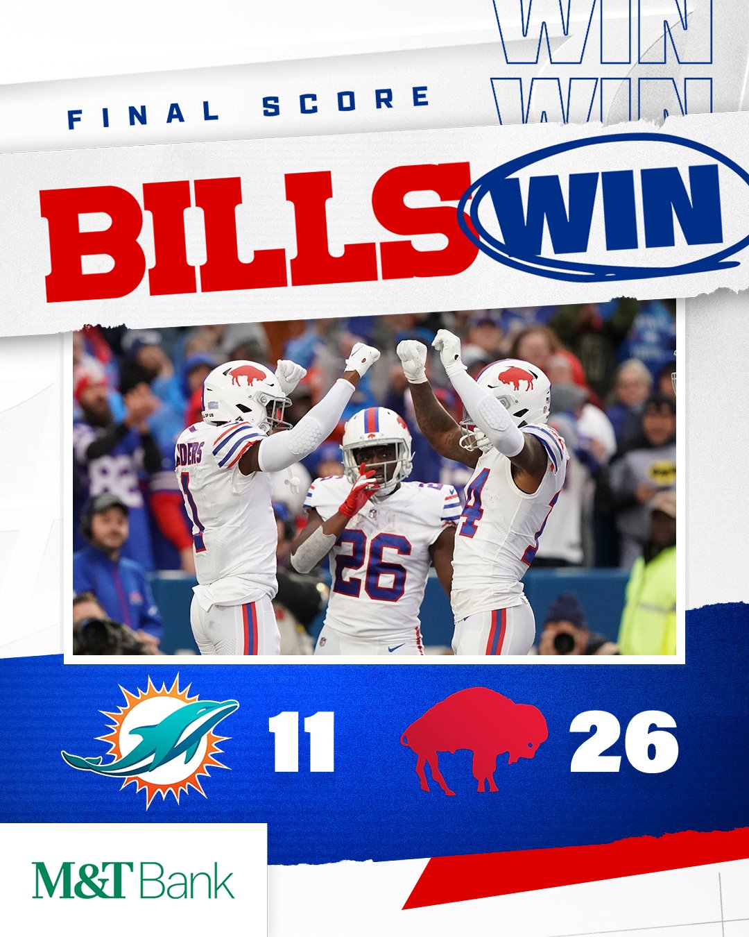 El mariscal de campo Josh Allen regresó de una semana de descanso y tuvo una primera mitad inestable, pero lanzó pases de touchdown en series consecutivas de la segunda mitad para llevar a los Buffalo Bills a un triunfo por 26-11 sobre los Miami Dolphins.Los Bills (5-2) se recuperaron de una derrota por 31-34 ante los Tennessee Titans el 18 de octubre al continuar con su dominio sobre su rival de la Division Este de la Conferencia Americana Buffalo venció a Miami por séptima vez consecutiva, un récord en la serie.Allen encontró su ritmo al supervisar un par de unidades de anotación que se combinaron para 22 jugadas y 151 yardas después de manejar una ofensiva de sólo 100 yardas en la primera posesión de Buffalo en el tercer cuarto.Josh Allen terminó con 29 de 42 pases para 249 yardas con dos pases de anotación. Allen, quien se despidió de los Dolphins luego de anotar en una carrera de touchdown de siete yardas con 1:07 minutos por jugarse, tuvo la mejor marca del equipo de 55 yardas por tierra.Por los Dolphins (1-7) su mariscal de campo Tua Tagovailoa hizo buenos 21 de 39 yardas para 205 yardas y una interceptación. Miami ha perdido siete partidos seguidos para igualar su racha más larga desde que cayeron en sus primeros siete juegos de la temporada 2019.JL