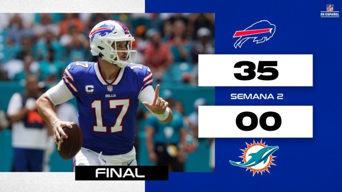 El juego entre Bills de Buffalo y Dolphins de Miami se inclinó totalmente a favor de los visitantes. Y la derrota resultó muy dolorosa para los Dolphins.Josh Allen lanzó dos pases de anotación y tuvo la colaboración de su ataque terrestre con dos anotaciones de Zach Moss. Además, la defensiva de defensiva de los Bills castigó a Tua Tagovailoa, quien salió del juego con molestias en las costillas, en lo que fue una paliza de 35-0 el domingo.Devin Singletary aportó 82 yardas y otra anotación terrestre para los Bills. Buffalo llegó a seis victorias en fila en la serie contra sus rivales de división, en las que promedia 20 puntos de ventaja. Es la segunda vez en la historia que los Bills encadenan seis triunfos contra los Dolphins.Jacoby Brissett se encargó de la ofensiva de los Dolphins y completó 24 de 40 pases para 169 yards. Allen completó 17 de 33 pases para 179 yardas para los Bills. Si quieres tener más contenido, más imágenes y aún más noticias, entonces descarga INFORMAPlus, la aplicación digital de EL INFORMADOR, donde tenemos materiales exclusivos para tí.Descarga la aplicación y pruébala GRATIS por treinta días. Para iOS: https://apple.co/35jaVgbPara Android: https://bit.ly/3gwVSEVSi eres suscriptor de EL INFORMADOR tu acceso está incluido, solicítalo al 33 3678-7777JL
