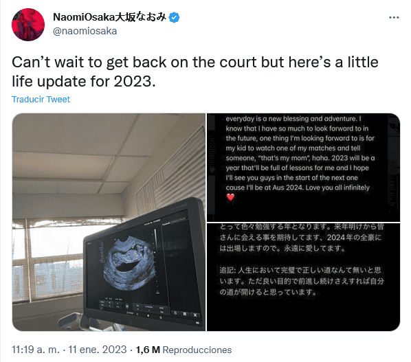 La ex número uno del tenis mundial japonesa Naomi Osaka sorprendió a sus fans al revelarles la noticia de que está embarazada y que se tomará una pausa hasta 2024."Una cosa que espero es que mi hijo vea mis partidos y le diga a alguien: 'esa es mi mamá'", tuiteó Osaka, de 25 años, junto con una foto de un eco.Naomi Osaka agregó que tiene la intención de regresar a las canchas para el Abierto de Australia en 2024.Osaka no ha jugado desde septiembre y su retiro del Abierto de Australia, que comienza la próxima semana, desconcertó a muchos observadores. Osaka no había explicado su ausencia hasta hoy.Su última aparición en un torneo fue en el Pan Pacific Open en Tokio en septiembre, donde la favorita local se retiró antes de su partido de segunda ronda, quejándose de dolor abdominal.La mejor clasificada del mundo en 2019, la jugadora japonesa que creció en Estados Unidos, ahora ocupa el puesto 47 en el escalafón de la WTA.Osaka ha ganado cuatro títulos individuales de Grand Slam (el Abierto de Australia en 2019 y 2021 y el Abierto de Estados Unidos en 2018 y 2020).Forbes la nombró la atleta femenina con mayores ingresos del mundo para 2022, con ganancias reportadas de 51.1 millones de dólares.Sin embargo, su éxito comercial no se reflejó en la cancha el año pasado, ya que sufrió derrotas en la primera ronda tanto en Roland Garros como en el de Estados Unidos y se retiró de Wimbledon con una lesión en el tendón de Aquiles."Estos pocos meses lejos del deporte realmente me han dado un nuevo amor y aprecio por el juego al que he dedicado mi vida. Me doy cuenta de que la vida es muy corta y no doy ningún momento por sentado; cada día es una nueva bendición y aventura", escribió en su declaración el miércoles.OF
