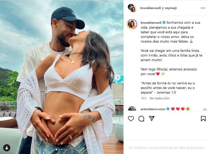 La estrella brasileña del PSG, Neymar, y Bruna Biancardi anunciaron en sus redes sociales, con un emotivo mensaje, que están esperando un hijo juntos."Soñamos con tu vida, planeamos tu llegada y saber que estás aquí para completar nuestro amor hace nuestros días mucho más felices", señaló la pareja en un mensaje compartido en el perfil de Instagram de ambos.Neymar y Biancardi, que es empresaria y modelo de profesión, remarcaron que su retoño "vendrá a una hermosa familia, con un hermano, abuelos, tíos y tías" que ya lo "quieren mucho"."¡Ven pronto hijo (a), estamos ansiosos por ti!", expresaron, lo que parece indicar que aún no saben el sexo del futuro bebé.Y completaron su anuncio con un pasaje bíblico: "Antes de formarlo en el seno materno yo lo elegí; antes de que nacieras, yo lo separé".Según la prensa brasileña, Neymar, de 31 años, y Biancardi, de 29, están juntos desde 2021.Neymar y su pareja acompañaron su mensaje con varias fotografías en las que la pareja aparece abrazándose y sonriendo.La estrella de la Selección de Brasil, que actualmente se recupera de una grave lesión en los ligamentos del tobillo, ya es padre de Davi Lucca, de 11 años y fruto de su relación con la "influencer" Carol Dantas, de acuerdo con el portal G1.OF
