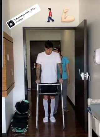 La recuperación de Nicolás Castillo sigue en ascenso. El delantero del América mostró en sus redes sociales un video donde aparece caminando.Apoyado de una andadera y una enfermera, el atacante chileno dio sus primeros pasos. Nico luce delgado y con el cabello crecido. El tiempo de recuperación de Nico es de ocho meses, aproximadamente. El jugador de las Águilas reingreso al hospital el 13 de febrero por un sangrado en la pierna donde sufrió una trombosis, desde entonces, no ha salido.Hace unos días los de Coapa se tomaron la foto oficial del Clausura 2020 y en su representación apareció su hijo portando su playera con el dorsal 15.En el actual certamen, el chileno disputó únicamente 15 minutos. AJ