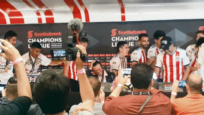 El partido se fue hasta la última instancia, los nervios en la banca de Chivas estaban a tope. Se decidió desde la frontera del éxito o fracaso tras empatar en el marcador global en tiempo regular 3-3. En cuanto falló Bradley el cuarto penal, todos se abrazaron, comenzaron a brincar y gritar ¡campeones, campeones! Chivas estará en el Mundial de Clubes tras dejar fuera a Toronto 7-5 contando los tiros penales.La plantilla se reunió, rezó, dio gracias como es una costumbre y algunos voltearon a la portería Norte, donde se cobraron los penales y que fue la misma en la cual le ganaron al Morelia la Copa MX.El técnico Matías Almeyda de inmediato se sumó a sus jugadores y fueron hacia la porra, agradecieron y comenzaron a caminar por todo el campo, dando gracias a la afición por su apoyo y diciendo: “Es para ustedes, es de ustedes”.El “Pelado” comenzó a festejar, se dio golpes en el corazón y brincaba con la mirada en la tribuna, la cual estaba extasiada de felicidad. La porra vitoreó el apellido del estratega ¡Almeyda, Almeyda!Amaury Vergara bajó a saludar al plantel ante la ausencia del dueño Jorge Vergara, acompañado de José Luis Higuera y el director deportivo, Francisco Gabriel de Anda, quienes aplaudieron a Rodolfo Pizarro al ser nombrado el Jugador Juvenil del torneo, así como a Rodolfo Cota, con el Guante de Oro por el mejor arquero.Mientras entregaban medallas a Toronto y reconocían a Giovinco como el Mejor Jugador del Torneo, Almeyda y su cuerpo técnico estaban sentados en tres cuartos de cancha, tranquilos, ya pensando en el festejo y esperando turno para recibir el trofeo de la Liga de Campeones de la Concacaf, y sus medallas.Durante la premiación del equipo, la afición comenzó a gritar ¡Que les paguen... que les paguen!, al tiempo que Miguel Basulto, como gesto de sus compañeros por la muerte de su padre, levantaba el trofeo que los acredita como campeones de la Concacaf. Los directivos, Amaury Vergara, Higuera y De Anda, observaron a distancia cómo festejaban los suyos, al final los invitaron a tomarse una foto en el marco de campeones.Al final, Alan Pulido habló sin tapujos sobre el incumplimiento de la directiva con el pago de premios.“No es por dinero, eso viene de la mano, son obligaciones de la directiva. Somos una gran familia, Matías ha formado una gran familia a pesar de las diferencias y conflictos. El arreglar el problema es cuestión de la directiva. Apenas pagaron 3% de lo que nos deben, pero ahora ese no es el problema”.El ambiente tras la obtención de la Copa de Campeones de la Concacaf es sensacional en el Guadalajara, y así lo confirmaron los jugadores, quienes irrumpieron la conferencia de prensa que estaba dando el técnico Matías Almeyda para bañarlo con bebida rehidratante, lo cual dijo Almeyda, demuestra la calidad de grupo que tiene.“Realmente estoy muy feliz. A ella (la copa) la veníamos deseando desde hace un año cuando fuimos campeones. Luego tuvimos dos torneos malos, luego una Semifinal en la Copa MX. La idea era participar en la Copa internacional y ganarla porque Chivas la había ganado en el año 62. Soy un gran agradecido, le tengo agradecimiento a mis jugadores y sin ellos un entrenador no podría crecer. Agradezco a todos los que trabajan en Chivas (nombró todas las áreas), porque por ellos podemos trabajar al máximo”.