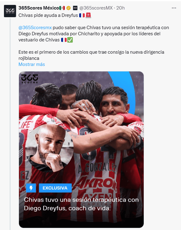 El delantero Javier "Chicharito" Hernández es considerado como uno de los futbolistas mexicanos más importantes de la historia; su carrera y sus goles lo respaldan como uno de los más grandes talentos nacionales, aunque en los últimos años atrajo reflectores por más polémicas que goles. Muchos críticos y aficionados señalan a Diego Dreyfus, coach de vida del futbolista, como el culpable de sus "distracciones".Amigos desde el año 2017, Dreyfus y Hernández convivieron en la última etapa europea de la carrera del máximo goleador de la Selección Mexicana, en su paso por el futbol de Estados Unidos y ahora, según rumora el medio deportivo 365scores, Chicharito lo habría llevado a Guadalajara para "cambiar la energía" de las Chivas."365scores pudo saber que Chivas tuvo una sesión terapéutica con Diego Dreyfus, motivada por 'Chicharito' y apoyada por los líderes del vestuario de Chivas. Este es el primero de los cambios que trae consigo la nueva dirigencia rojiblanca, quienes están abiertos a las sesiones terapéuticas, así como nuevas metodologías de trabajo para cambiar el enfoque negativo del equipo", publicaron en redes sociales.Otro futbolista señalado como motivador de que se llevara a cabo esta reunión es Víctor Guzmán.Esto surge después de que las Chivas hayan sido eliminadas del Torneo Clausura 2025 sin haber entrado, aunque fuera al Play-In. El Rebaño empató en la última jornada contra el Atlas y se quedó afuera de la zona de clasificación. Por el momento, tampoco se sabe si "Chicharito" seguirá en Guadalajara, ya que algunos rumores lo colocan en San Diego de la MLS, equipo donde juega el mexicano Hirving Lozano.*Mantente al día con las noticias, únete a nuestro canal de WhatsAppOF