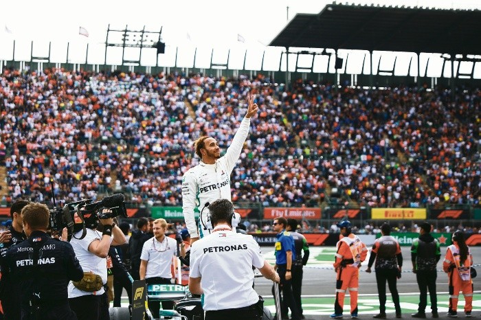 En 2017, Lewis Hamilton se convirtió en el cuarto piloto en la historia de la Fórmula Uno en convertirse en campeón mundial después de haber corrido el Gran Premio de México.Entonces, el piloto de Mercedes se unió a John Surtees, Denny Hulme y Graham Hill como los únicos en proclamarse campeones mundiales en suelo azteca.El año pasado, el piloto británico fue el primero en revalidar la corona en territorio mexicano para así convertirse en el tercero en la historia de la categoría en ganar al menos cinco campeonatos.Hoy, el de Mercedes se perfila para lograr una tercera coronación en la Ciudad de México, si es que se logran cumplir algunas condiciones.En esta ocasión, el Gran Premio de México no es la antepenúltima fecha de la temporada, es decir, después de la carrera en el Autódromo Hermanos Rodríguez aún restarán tres fechas más en el campeonato, por lo que el británico podría coronarse una segunda ocasión con dicha anticipación.Hamilton acumula 338 puntos después de 17 fechas cumplidas en el campeonato, 64 más que su compañero de equipo Valtteri Bottas, quien es el otro piloto vivo en la contienda.Sin embargo, el pentacampeón mundial requiere de sumar 14 puntos más que el finlandés para concretar un sexto título mundial y tercero conseguido en la pista de la Magdalena Mixhuca.Si Hamilton logra esa diferencia el próximo domingo, restarían 78 puntos en compentencia (25 por primer lugar de cada carrera restante y tres por cada vuelta rápida de esas competencias).Es decir, si el británico logra el número mágico en México, puede darse el lujo de no volver a sumar en Estados Unidos, Brasil y Abu Dhabi, sin importar si Bottas logra ganar en cada una de esas carreras y además suma el punto extra por vuelta rápida.Sólo una tragedia impediría que Hamilton sumara su sexto título mundial, de lo contrario, todo es cuestión de tiempo y en México se frotan las manos por ver cómo se podría reescribir la historia del Gran Circo.En uno de los finales de temporada más dramáticos en la historia de la categoría, Lewis Hamilton llegó al Gran Premio de Brasil con la consigna de terminar mínimo en quinto sitio si Felipe Massa ganaba la carrera, lo que al final ocurrió. En la última curva de la competencia, Hamilton rebasó a Timo Glock por el quinto puesto para por un punto superar a Massa.Hamilton se convirtió en doble campeón del mundo luego de que en la última carrera de la temporada (que otorgaba el doble de puntos) cruzara la meta en primer sitio, aunado al abandono de Nico Rosberg. Ambos pilotos de Mercedes llegaban con una diferencia de 17 puntos a favor del británico, quien al final se coronó por brecha de 67 unidades.En un fin de semana en el que la lluvia fue protagonista, Hamilton consigue su tercer título mundial (segundo consecutivo), luego de arrebatarle el triunfo a su coequipero Nico Rosberg a ocho vueltas del final del Gran Premio de Estados Unidos. La décima victoria de la temporada para el británico le aseguró la corona a falta de tres fechas para el final de calendario.Lewis Hamilton llegaba al Gran Premio de México con la consigna de que Sebastian Vettel no hiciera 16 puntos más que él en la carrera para lograr la corona. Con dramatismo incluido, el británico terminó en el noveno sitio y Vettel en cuarto (10 puntos de diferencia), por lo que a falta de dos fechas para concluir la temporada, el de Mercedes se ciñó su cuarta corona.Con mayor tranquilidad que un año atrás, Lewis Hamilton requería de al menos un séptimo sitio para conquistar su quinto título mundial sin importar lo que Sebastian Vettel hiciera en el Autódromo Hermanos Rodríguez. Al final, el británico logró un cuarto sitio contra el segundo lugar del alemán, aunque la ventaja de 64 puntos a falta de dos fechas fue la diferencia.En la última carrera de la temporada, el británico llegaba cuatro puntos detrás de Graham Hill en la lucha por el título. Surtees corrió con suerte para coronarse, pues su compañero de equipo, Lorenzo Bandini, dejó fuera de combate a Hill y Jim Clark abandonó. Surtees se coronó al terminar en segundo sitio.El neozelandés llegaba a la última carrera de la temporada con cinco puntos de ventaja sobre Jack Brabham, quien necesitaba del triunfo y que Hulme abandonara en la Ciudad de México para quedarse con la corona. Hulme logró el tercer sitio y cuatro puntos más en su causa por el título.Hill se disputaba el título con Jackie Stewart, al que le aventajaba con tres puntos llegando a México, pero el primero hizo válida la pole y se proclamó triunfador en la Magdalena Mixhuca para asegurarse el título mundial. En tanto, Stewart se complicó de más y terminó en séptimo lugar.