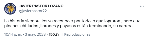 Tigres vivió una noche de terror ayer miércoles en León, al quedar eliminado en la ronda de semifinales de la Liga de Campeones de Concacaf.El resultado generó frustración en varios jugadores de la escuadra regia, que ante el silbatazo final no dudaron en buscar confrontar a sus rivales en plena cancha.Elementos como Nahuel Guzmán, Guido Pizarro y Raymundo Fulgencio fueron algunos de los que sobresalieron con actitud negativa, ganándose comentarios negativos en redes sociales.Uno de los más fuerte, llegado por parte de una de las exfiguras de los Tigres, que mediante sus redes sociales llamó 'chillones y payasos' a los jugadores felinos.Javier "Pastor" Lozano fue el encargado de criticar a las estrellas del equipo de Robert Dante Siboldi, asegurando que se debe saber perder."La historia siempre los va reconocer por todo lo que lograron, pero que pin… chiflados, llorones y payasos están terminando, su carrera", escribió.OF