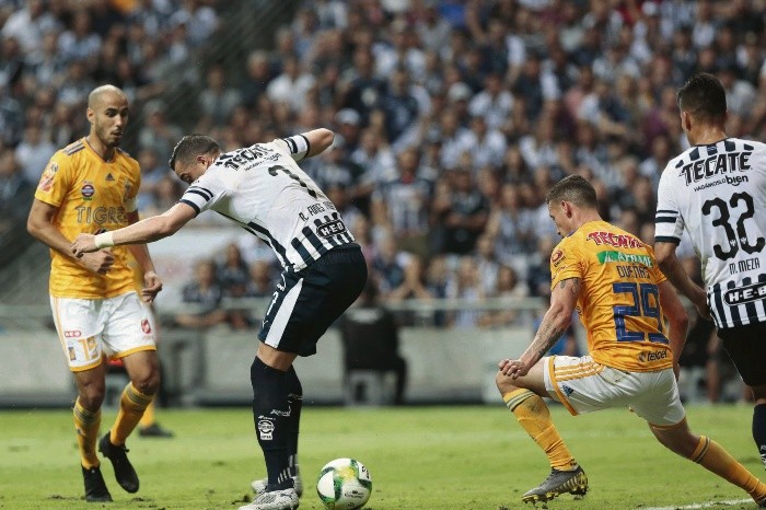 Tigres de la UANL se mantuvo en la cima de la clasificación general del Torneo Clausura 2019 de la Liga MX, al empatar 1-1 en la edición 118 de "clásico regiomontano" ante Rayados de Monterrey.Los goles del encuentro, de la décima jornada, fueron conseguidos por el argentino Rogelio Funes Mori al minuto 33 por los de casa y el colombiano Luis Quiñones al 80, por los visitantes. Con este resultado, los felinos llegaron a 23 puntos y los locales a 22.El encuentro comenzó con un buen ritmo, con ambos equipos en busca de apoderarse de las acciones en el medio campo, pero sin claridad.Los locales intentaron ponerse al frente en el marcador, pero se enfrentaron a un visitante bien parado en el terreno de juego, que logró contener los intentos del cuadro dirigido por el estratega uruguayo Diego Alonso. Tigres tuvo la primera de peligro cuando el colombiano Luis Quiñones llegó por el lado derecho, desde donde centró al área y ahí apareció el delantero chileno Eduardo Vargas, quien falló y mandó la pelota por encima del travesaño.Ante ello, los de casa respondieron y el argentino Rogelio Funes Mori recibió centro desde el sector izquierdo, disparó, pero el guardameta argentino Nahuel Guzmán estuvo atento para rechazar el esférico.Los felinos fueron los más insistentes y tuvieron arribos a través del ecuatoriano Enner Valencia y del colombiano Julián Quiñones, pero todo quedó en susto para los de casa.Pocas habían sido las opciones conseguidas por los de casa, pero a los 33 minutos Funes Mori recibió centro de Jesús Gallardo y de espaldas al marco tiró de taquito para mandar la pelota a las redes y así cayó el 1-0, por lo que así se fueron al descanso.Para la parte complementaria, el cotejo continuó con un buen ritmo, con unos felinos insistentes ante la portería defendida por el guardameta Marcelo Barovero, pero no podían igualar.Tigres obligó a Monterrey a replegar sus líneas, pero no podían generar verdadero peligro, mientras los de casa seguían sin inquietar en demasía a Nahuel Guzmán.Los felinos siguieron en la lucha por hacerse presentes en el marcador y fue a los 80 minutos cuando el colombiano Luis Quiñones llegó por izquierda y sacó tiro a primer poste para lograr el 1-1.Después de ello, el marcador ya no se movió pese a los intentos de ambos equipos y a final de cuentas se llevaron un punto cada uno en el cotejo de la décima fecha.El árbitro del encuentro fue César Arturo Ramos, quien amonestó a Dorlan Pabón, Rogelio Funes Mori, Nicolás Sánchez y César Montes, de Rayados, y a Francisco Meza, Luis Quiñones y Guido Pizarro, de Tigres.El Clásico Regio es uno de los encuentros que más pasiones levanta en el futbol mexicano, tan así, que hasta los jugadores se involucran intensamente antes, durante y después del encuentro que paraliza a la Sultana del Norte.Al menos ese es el caso del defensa tapatío y jugador de Tigres Carlos Salcedo, quien se enganchó con la afición de Rayados al término del encuentro de anoche en la casa del Monterrey.Instantes después de que el central César Arturo Ramos decretó el final del encuentro, el portero felino, Nahuel Guzmán comenzó a aplaudir por el punto que logró rescatar su equipo, sin embargo eso no le pareció a una porción de la parcialidad albiazul, que comenzó a aventar vasos en dirección al guardameta.En respuesta a la afrenta, Salcedo reprobó las actitudes de la fanaticada rayada acercándose hacia su portero para después hacer una seña obscena en dirección al sitio del cual provenían los proyectiles.El gesto fue captado por algunas cámaras de televisión y fotógrafos que aún se encontraban en la cancha, por lo que se podría esperar alguna queja de parte de Rayados para que la Comisión Disciplinaria investigue los hechos y decida determinar si el central de los felinos es acreedor o no a una sanción. JM