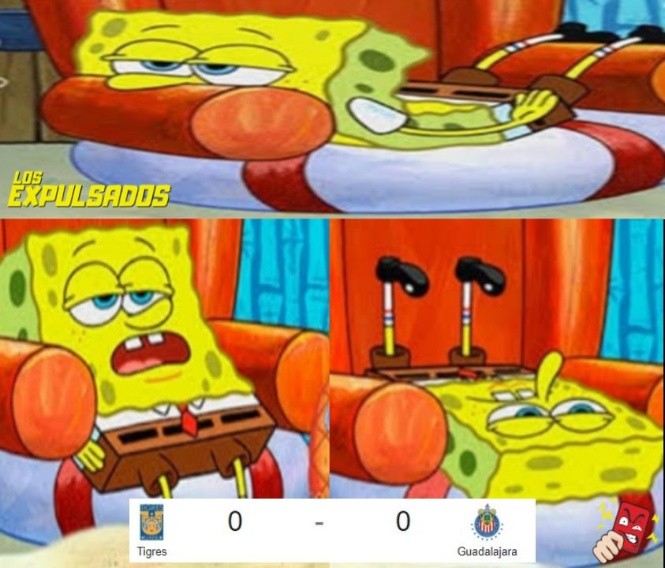 Chivas y Tigres empataron sin goles en Monterrey como parte del juego de Ida de la gran Final del futbol mexicano. El partido fue tenso, pero sobresalió la defensa como estrategia.El Rebaño se fue limpio de la cancha del “Volcán” y todo se definirá el próximo domingo en la cancha del Estadio Akron, lugar en donde el Guadalajara recibirá a Tigres en un duelo de Vuelta que arrancará a las 19:35 horas.Sin embargo, tras el primer encuentro de la gran final, los aficionados hicieron llegar los memes de su percepción del partido. Muchos coincidieron en que fue un partido aburrido.