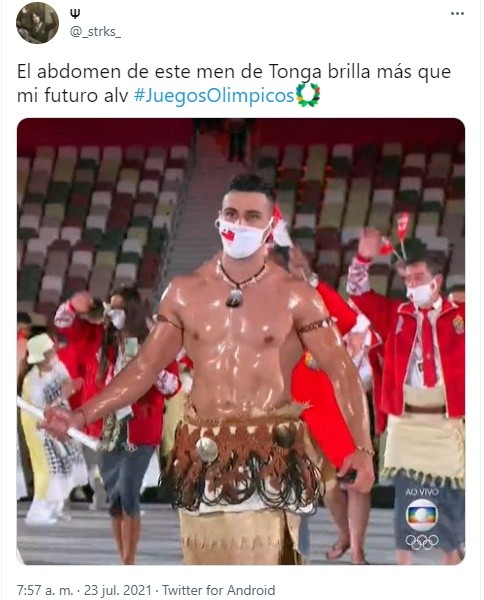 El abanderado de Tonga, Pita Taufatofua, volvió a presentarse este viernes con el torso descubierto y cubierto de aceite en la inauguración de unos Juegos Olímpicos, esta vez, en los de Tokio 2020.Pita Taufatofua, que sorprendió al desfilar con el torso desnudo en la inauguración de los pasados Juegos Olímpicos de Invierno de PyeongChang 2018, donde se enfrentó a temperaturas de cinco grados bajo cero y una sensación térmica de menos diez, para competir en roller skies, volvió a incendiar el ambiente y las redes sociales, ahora en Tokio 2020. El atleta de 37 años se robó primero las miradas en la inauguración de los Juegos Olímpicos de Río 2016, al mostrar su musculatura mientras desfilaba en el estadio Maracaná.Con el traje típico de su país, y con aceite en el torso, Taukatofua se convirtió rápidamente en trending topic en las redes sociales, hecho que se repitió en 2018 y ahora en 2021, cinco años después.Taukatofua es taekwondoín. "Mi sueño fue convertirme en atleta olímpico de taekwondo y ahora estoy cumpliendo ese sueño", explicó en 2016 en Instagram.Aunque Pita nació en Australia, representará a Tonga en Tokio 2020, en la prueba de taekwondo de +80 kilogramos.Además de atleta, Pita es embajador de la Unicef y ha incursionado como modelo en varias ocasiones.¡La cobertura de los Juegos Olímpicos no termina aquí! Descubre los contenidos exclusivos que tenemos preparados en INFORMAPlus, la aplicación digital de EL INFORMADOR, en donde a partir de las 12:00 del día, al término de cada jornada deportiva, se publicará un suplemento exclusivo con todos los detalles de lo que sucede en Tokio 2020.Más fotografías, más información y más datos sobre todos los atletas que buscan conquistar la gloria olímpica. Descarga la aplicación y pruébala GRATIS por treinta días. Para iOS: https://apple.co/35jaVgbPara Android: https://bit.ly/3gwVSEVOF