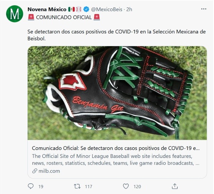 A pocos días de comenzar la aventura en los Juegos Olímpicos de Tokio 2020, la alerta se encendió en la Selección mexicana de béisbol luego de que este lunes se diera a conocer que, tras los estudios PCR realizados apenas el domingo durante el inicio de la concentración, se detectaron dos casos positivos de COVID-19.Los dos elementos del equipo de béisbol de México son Héctor Velázquez y Sammy Solís, ambos se encuentran asintomáticos, pero se encuentran aislados en sus habitaciones de hotel, mismo caso de toda la delegación de béisbol mexicana, esto hasta que el laboratorio médico entregue las pruebas PCR que se realizaron este lunes para descartar más casos.Ante esto, mediante un comunicado oficial, se informó que “el entrenamiento en el Estadio Alfredo Harp Helú queda oficialmente cancelado. Y se seguirán todos los protocolos marcados por el Comité Olímpico Mexicano (COM) para salvaguardar la salud de todos los integrantes del conjunto nacional de béisbol que participará en los Juegos Olímpicos Tokio 2020”, apuntó el comunicado.El equipo de Benjamín Gil tiene planeado viajar la madrugada del jueves a Japón para comenzar a competir a partir del 29 de julio en la justa veraniega.Descubre los contenidos exclusivos que tenemos preparados en INFORMAPlus, la aplicación digital de EL INFORMADOR, en donde a partir de las 12:00 del día, al término de cada jornada deportiva, se publicará un suplemento exclusivo con todos los detalles de lo que sucede en Tokio 2020.Más fotografías, más información y más datos sobre todos los atletas que buscan conquistar la gloria olímpica. Descarga la aplicación y pruébala GRATIS por treinta días. Para iOS: https://apple.co/35jaVgb Para Android: https://bit.ly/3gwVSEVJM