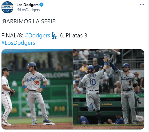 Mookie Betts inició un partido con jonrón por 25ta ocasión en su carrera y los Dodgers de Los Ángeles extendieron su dominio sobre Pittsburgh al derrotar el jueves 6-3 a los Piratas.Betts depositó el tercer lanzamiento del juego de Mitch Keller (3-7) detrás de la barda del jardín central para su sexto jonrón de la campaña. Cody Bellinger y Justin Turner apilaron dos imparables cada uno y Zack McKinstry remolcó dos carreras para ayudar a los Dodgers a hilvanar 13 triunfos sobre los Piratas.Phil Bickford se anotó su primer salvamento después de que se diera por terminado el encuentro con un out en la parte alta del octavo inning, luego de un retraso por lluvia de 75 minutos.Julio Urías (9-2) se convirtió en el primer lanzador de Grandes Ligas en llegar a nueve victorias en la campaña al retirar seis entradas y darle al agotado bullpen de Los Ángeles un poco de descanso.El mexicano añadió un sencillo productor de dos carreras en el tercer inning ante Keller, después de que los Piratas otorgaron boleto intencional a Austin Barnes para llenar las bases con dos outs.Con el triunfo, los Dodgers llegaron a seis series barridas en lo que va de temporada. También igualaron su racha más larga de victorias sobre Pittsburgh, luego de derrotar a los Piratas 13 veces consecutivas entre el 4 de mayo y el 20 de julio de 1952, cuando la franquicia estaba en Brooklyn.Bryan Reynolds sonó su 10mo jonrón por los Piratas, la cifra más alta del equipo. Adam Frazier prolongó a 13 su racha de juegos con al menos un imparable, pero Pittsburgh sufrió su cuarto revés en fila y tiene marca de 11-27 en sus últimos 38 juegos después de colocarse brevemente arriba de .500 (12-11) a finales de abril.Los relevistas de Los Ángeles trabajaron siete entradas y un tercio en el triunfo de 2-1 del miércoles, que también fue postergado por la lluvia.Urías no estuvo particularmente fino, al permitir al menos un corredor en cada una de las primeras cuatro entradas, pero evitó mayores problemas.Por los Dodgers, el mexicano Urías de 2-1 con dos impulsadas. Por los Piratas, el dominicano Erik González de 3-1 con una producida. AJ