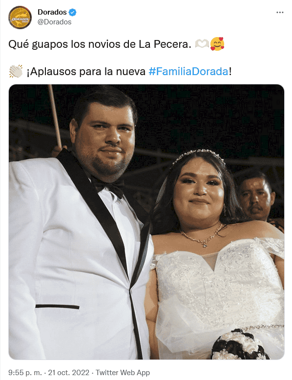 Dicen que el día de tu boda debe ser muy especial, único e irrepetible, y con esa idea en mente es que una pareja llevó al extremo la celebración. En redes sociales se volvió viral la imagen de unos recién casados por haber pasado su noche de bodas en las tribunas, apoyando a los Dorados de Sinaloa.La pareja se presentó en el Estadio Dorados con esmoquin y vestido en el partido de Repechaje de la Liga de Expansión MX, todo para apoyar al equipo de Culiacán que se midió a los Alacranes de Durango.Los novios, quienes cantaron y apoyaron a su equipo, rápidamente se hicieron tendencia en redes sociales, plataforma en la que Dorados, agradeció el apoyo y les deseó lo mejor.Lamentablemente, para los aficionados al equipo de Dorados, la escuadra local perdió la posibilidad de seguir avanzando, pues cayó 3-1 ante Alacranes.OF