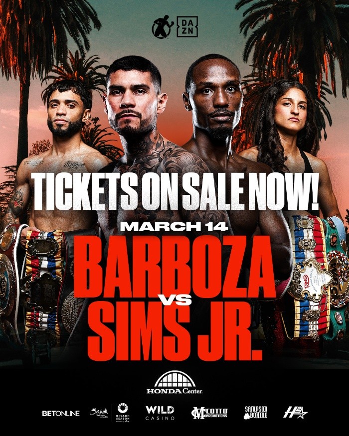 En la misma función, Arnold Barboza Jr. y Kenneth Sims Jr. pelearán por el campeonato Global de peso wélter de la OMB, y la campeona indiscutida de peso mosca, Gabriela Fundora, enfrentará a la colombiana Viviana Ruiz Corredor.