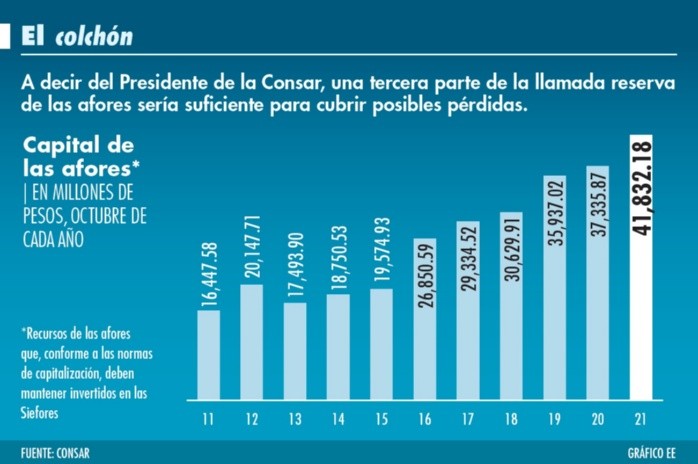 La Asociación Mexicana de Afores (Amafore) exhortó a la Comisión Nacional del Sistema del Ahorro para el Retiro (Consar) a que dé más tiempo para que las administradoras de fondos para retiro (afores) puedan ajustarse al nuevo modelo de negocio que originó la reducción de 23 puntos base a la comisión promedio que cobrarán las afores en el 2022.“Cualquier empresa que tenga una disminución de la mitad de sus ingresos en tan sólo unas semanas, desde luego implica una modificación. Es un cambio en el modelo de negocio que tienen que hacer las administradoras de fondos para adecuarse a este cambio con tan poca anticipación. Han estado trabajando en ello. (Las afores) están revisando toda su operación para adecuarse a esta nueva realidad”, comentó en rueda de prensa, Bernardo González Rosas, presidente de la Amafore.La Consar publicó a finales de octubre en su página de Internet que el máximo al que estarán sujetas las comisiones que cobran las 10 administradoras de fondos será de 0.57% para el próximo año; actualmente la comisión promedio es de 0.807 por ciento.“Las afores no están discutiendo el nivel de comisiones que se ha planteado. Desde luego que se puede llegar (a ese nivel). La preocupación que tiene la industria, en general, es la falta de apego de la Comisión Nacional de Mejora Regulatoria (Conamer) a la Ley de Mejora Regulatoria, porque se otorgaron excepciones de manera irregular para que el proceso de la metodología se llevara a cabo”, explicó.El mes pasado la Consar solicitó a la Conamer una exención del Análisis de Impacto Regulatorio de la nueva metodología para calcular la comisión de las afores en el 2022. Ante ello, Amafore reviró en un comentario a dicha dependencia y sostuvo que no se podía ejecutar la acción ya que antes se debe de escuchar a los interesados.A pesar de la disminución, el titular del gremio reconoció que se trabaja para mantener la calidad del servicio y sobre todo la calidad de las inversiones que han tenido las afores en los 24 años que tienen.“Nuestra prioridad es que no se afecte el servicio a los trabajadores y mucho menos los extraordinarios resultados que se están obteniendo en materia de inversiones. Esto lo vamos a defender y a cuidar a ultranza. No habrá afectaciones en el servicio, ni en el buen trabajo de obtener rendimientos a los trabajadores”, comentó.Cabe recordar que las afores administran 5.1 billones de pesos; asimismo, el rendimiento histórico del Sistema de Ahorro para el Retiro (SAR) es de 5.41% real, al cierre de octubre.DesregulaciónEn este sentido, tanto la Consar, mediante su titular, Iván Pliego Moreno, y la Amafore han planteado llevar a cabo modificaciones regulatorias para acompañar el proceso acelerado de baja de comisiones.“Las administradoras hemos planteado varias propuestas de regulación (...) Una de estas propuestas es el estado de cuenta, en este sentido uno de los planteamientos que sí aceptó Consar es que se pueda enviar de manera digital a los trabajadores y se están llevando a cabo cambios para que esto se haga realidad”, dijo González Rosas.Mientras tanto, no se ha podido avanzar en cuanto al pago de cuotas que pagan las administradoras de fondos a la Consar ya que de acuerdo con Amafore se paga el doble de lo que pagan los bancos a la Comisión Nacional Bancaria y de Valores (CNBV).“Es un desperdicio de recursos porque en realidad lo que dice la ley es que esos recursos que se pagan al gobierno deben ser utilizados para la supervisión, sin embargo, sólo 200 millones de pesos de los mil millones que pagan la afores al gobierno van a la Consar, los otros 800 millones de pesos se van al gasto público de otros elementos”, dijo Rosas.Reserva especialOtro tema es la desregulación de la reserva especial que es un cargo de capital que se hace para que las administradoras, en caso de que haya pérdidas por incumplimientos a la regulación, restituyan esos costos a los trabajadores.De acuerdo con González, esta reserva equivale a casi 42 mil millones de pesos, por ello llama al regulador a que replantee el modelo ya que la metodología aplicada es obsoleta y nada tiene que ver con las prácticas internacionales, como sucede con los bancos y la CNBV.“Debe de modificarse porque se tienen 42 mil millones de pesos que se podrían usar. (...) Una tercera parte de lo que se tiene constituido estaría más que sobrado para cubrir posibles pérdidas provocadas por incumplimiento a la regulación”, comentó.Ante ello, la Consar pide gradualidad para la entrada en vigor del cambio en la reserva especial. “No nos han dado gradualidad del lado de las comisiones”.Cuestionado sobre si existirían fusiones o quiebras de algunas afores, Bernardo González Rosas prevé que éstas no existirán, siempre y cuando logren modificar su modelo de negocio.