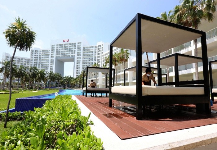 María Eugenia y Sebastián brillan en la soledad de la zona hotelera de Cancún, adonde viajaron aprovechando las promociones que trajo la reapertura del turismo en este balneario del Caribe mexicano luego de tres meses de cierre por la pandemia."Queríamos salir del país este año, ir a Europa, pero ya por toda esta situación de la contingencia y el dinero no se pudo, entonces decidimos aprovechar las promociones y venirnos a Cancún unos días", comentó María Eugenia Sánchez.Esta pareja de treintañeros, que trabaja en un estudio jurídico de Ciudad de México, gastó 80 dólares en pasajes aéreos, cuando normalmente hubiera tenido que desembolsar 180."Venimos en plan de relajación, para liberar el estrés después de tanta tensión e incertidumbre", dijo Sebastián Fernández, quien saca ventaja así del teletrabajo.Ambos se cuentan entre los escasos visitantes que llegaron a Cancún para la reapertura, el 8 de junio, del sector turístico, que sostiene 90% de la economía del estado de Quintana Roo, por lo que las autoridades lo declararon actividad esencial.No alcanzaron al recibimiento con mariachis y aplausos de los primeros turistas, con el cual los empresarios pusieron la nota alegre a esta primera fase en que la ocupación hotelera no podrá superar 30% de su capacidad.La reactivación del sector en el resto del país -de 127 millones de habitantes- será escalonada según el nivel de riesgo.El turismo representa 8.7% del PIB de México, una de las 10 naciones más visitadas del mundo, que hasta el martes contabilizaba 124 mil 301 contagios y 14 mil 649 muertes por COVID-19. Cancún, uno de sus destinos favoritos, acumula 325 decesos y mil 551 casos positivos.Unos 40 hoteles retomaron labores. Desde temprano sus empleados desinfectan todas las áreas y colocan camastros sobre la arena blanca. La autorización se dio tras el cambio de alerta roja a naranja en el norte de Quintana Roo, donde está Cancún, aunque se mantienen restricciones para evitar rebrotes. Solo cuando el nivel pase a amarillo la ocupación podrá subir a 50%, y se normalizará cuando llegue a verde.Moon Palace, RIU, Hard Rock, JW Marriott, Holiday Inn y Xbalamque son algunos de los complejos que reabrieron con medidas como el uso de mascarillas por parte del personal, puntos de desinfección y distanciamiento.Desde la semana pasada el Consejo de Promoción Turística regional intensificó la publicidad para atraer turistas extranjeros y mitigar la crisis.Mario Ruiz, uno de los más de 90 mil empleados del sector despedidos al inicio de la crisis, ya acude a entrevistas de trabajo. Sin ingresos y con rentas atrasadas, no resiste más. "No hay qué comer, nos dicen que nos quedemos en la casa porque todavía uno se puede contagiar, pero no se puede. ¡Ni que fuera uno rico!", comentó. Esta ha sido la peor crisis en Cancún desde su fundación como destino turístico integralmente planeado, refiere Marisol Vanegas, secretaria de Turismo del estado.Vanegas espera que durante junio se recupere el 30% de la ocupación y que crezca 5% cada mes.Pero empresarios como Abelardo Vara, expresidente de la Asociación de Hoteles de Cancún, Puerto Morelos e Isla Mujeres, considera que eventuales contagios de empleados o turistas podrían generar una crisis mayor. "Lo mejor es esperar hasta el 1 de julio y, si esto no ha mejorado, esperar más", dijo el propietario de cuatro hoteles.A estas dificultades se suma la posible llegada masiva de sargazo, un alga que afecta las playas de Cancún desde hace cinco años e incomoda por su mala imagen y olor.Un monitoreo conjunto de la Universidad del Sur de Florida y la NASA prevé arribos de sargazo moderados durante junio para esta región del Caribe, pero mayores durante julio y agosto. La Secretaría de Marina de México informó que ya fueron instaladas barreras y serán desplegados buques de gran calado para recogerlo en altamar.IM