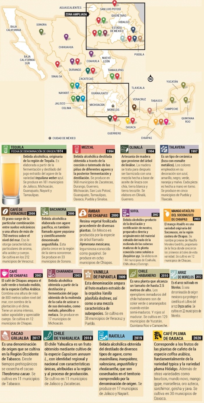 Para conservar el patrimonio y la tradición de algunos productos, fueron creadas las denominaciones de origen en México, contempladas en la Ley de Propiedad Industrial. Andrés Torres Acuña, encargado de Sistemas de Calidad del Consejo Regulador del Tequila (CRT), explicó que este distintivo sirve para identificar un producto como originario de una región o localidad del territorio nacional, con la intención de avalar su calidad y las características imputables al origen donde se produce. Refirió que el tequila es un ejemplo de crecimiento, gracias al trabajo que se tiene en el cuidado de la denominación de origen. “La denominación de origen del tequila es la más consolidada de todas y se ha tomado como ejemplo por el resto para seguir con sus procesos y se comparten todas sus experiencias”.Un producto con denominación de origen queda registrado ante el Instituto Mexicano de la Propiedad Industrial (IMPI), lo que implica que es exclusivo del lugar donde se elabora y sus características. Debe cuidarse que no existan imitaciones o que sus elementos sean falsificados. Actualmente, en México hay 18 denominaciones de origen y Jalisco cuenta con tres.Para obtener una denominación de origen tiene que haber una declaración emitida por el IMPI donde se reconozca. Luego se debe elaborar una norma oficial que especifique todas las características que debe cumplir el producto que tiene el reconocimiento. Además, debe contar con un Consejo Regulador que certifique, verifique y pruebe que el producto realmente cumple con lo indicado en la norma y la declaratoria. Con el fin de intercambiar experiencias y avances, el Consejo Regulador del Tequila es sede de la Asamblea General de la Asociación Nacional de Denominaciones de Origen (ANDO), que congrega a los representantes de las 18 denominaciones y las cuatro indicaciones geográficas. La ANDO se fundó en 2011 para fortalecer a todas las denominaciones de origen, apoyar a la creación de los Consejos Reguladores, la elaboración de las normas, para intercambiar experiencias para el desarrollo, buscar las políticas públicas para el fortalecimiento de todas las denominaciones y difundir las actividades que realizan.SABER MÁSGUÍA¿Qué opinan de la calidad del tequila de Jalisco?Participa en Twitter en el debate del día @informador
