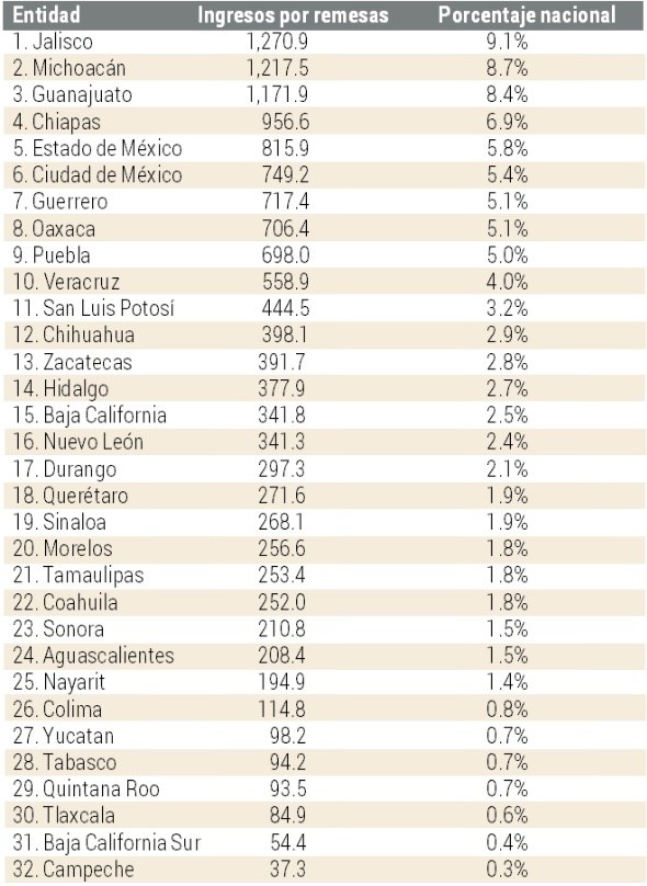 Las familias jaliscienses que reciben remesas desde Estados Unidos (EU) han tenido que ajustar sus gastos debido a la depreciación del dólar. Actualmente el tipo de cambio se cotiza en 16.80 pesos, en promedio, una cantidad menor comparada con los 20 a los que llegó el año pasado. Un ejemplo de esto es Heriberto Saucedo. Él envió 800 dólares a su hija y ella obtuvo 13 mil 440 pesos. Anteriormente recibía hasta 16 mil. Debido a esta situación, hizo modificaciones en su presupuesto para que le rindiera el dinero. Esto ocurre en medio de un fenómeno que expertos han llamado súper peso, que se refiere a la apreciación histórica de la moneda mexicana impulsada, en particular, por el “nearshoring” (empresas extranjeras que mueven su producción al país para estar más cerca de EU). “Mucha gente cree que cuando el dólar vale menos todo mundo gana, pero no: también tenemos grupos de personas que se ven afectadas porque ahora sus ingresos se reducen y no poco. Estamos hablando de reducciones del 16% y eso afecta su capacidad de gasto”, explicó Israel Macías, catedrático de la Universidad Panamericana (UP). El especialista agregó que el sector exportador y el turismo también se ven perjudicados por este fenómeno. La apreciación del peso frente al dólar no frena el envío de remesas. En mayo de 2023, México captó cinco mil 693 millones de dólares, la cifra más alta que tiene registro el Banco de México.Así, las remesas han tenido un avance anual con un incremento de 7.4% en el número de envíos de dinero y con un acumulado de 60 mil 804 millones de dólares en el último año, de acuerdo con el banco central.Antonio Ruiz Porras, coordinador del Doctorado en Estudios Económicos de la Universidad de Guadalajara, explicó que aunque técnicamente están entrando más remesas, en términos prácticos la gente recibe menos ingresos, es decir, se está perdiendo el poder adquisitivo.“Si hablamos de que se está perdiendo 25% de los ingresos, la verdad es una cantidad bastante fuerte sobre los ingresos de muchos hogares jaliscienses. Si comparamos el poder adquisitivo de diciembre de 2020 contra julio de 2023 estamos hablando de 25%, y eso es una cantidad muy grande, porque aunque tenemos récords históricos en ingresos de remesas, en términos prácticos cuando se transforman estas remesas en pesos se pierde valor. Se incrementaron 10% las remesas, pero se pierde 25%, estamos hablando en realidad de una pérdida del 15%”, analizó.El envío promedio de remesas en México es de 350 dólares en promedio al mes, mientras que en Jalisco es de 381 dólares.“La mayor parte de la remesas se usan para el consumo de corto plazo; entonces, ahí es donde se nota inmediatamente el efecto de la pérdida del poder adquisitivo, básicamente porque con lo que reciben ahora en realidad compran menos alimentos, adquieren menos bienes de consumo inmediato que lo que hubieran recibido en otras circunstancias”, agregó.El investigador de la Universidad de Guadalajara explicó que el programa PACIC no ha servido como estaba presupuestado, pero quizá sin hubiera funcionado no se hubiera sentido tanto la pérdida del poder adquisitivo.“Otra razón por la cual se perdió el poder adquisitivo también está asociado a la alta inflación”, añadió.Actualmente en México se tiene los niveles más altos de inflación. De acuerdo con el Banco de México la inflación se ubica en 5.06% a tasa anual. El Paquete Contra la Inflación y la Carestía (PACIC) es un acuerdo entre el Gobierno de México, productores, distribuidores y comerciantes, a través del cual se busca garantizar precios justos en los productos de la canasta básica. El plan es un acuerdo de reducción de costos y no de control de precios, a través de cuatro líneas de acción: estrategia de producción, estrategia de distribución, estrategia de comercio exterior, y otras medidas. Fuente: IIEG, elaborado con datos de Banxico. Porcentaje del total de ingresos por remesas durante el primer trimestre de 2023. La Procuraduría Federal del Consumidor, Profeco, informó el mes pasado que por envíos en efectivo, la empresa Pagaphone tuvo el mejor tipo cambiario de 18.35 pesos, que se tradujo en seis mil 239 pesos por 350 dólares, y una comisión de 10 dólares. En segundo lugar, Ulink, que dio seis mil 219 pesos por el mismo monto, sin cobrar comisión, y un tipo cambiario de 17.77 pesos.Mientras que las “peores” son Pangea Money Transfesfer y Cloud Transfer Services, según el reporte mensual Quién es Quién en Envío de Dinero.Ricardo Sheffield, titular de la Profeco, destacó el alza de recepción de remesas que se ha presentado desde que inició la actual administración federal, ya que subió 73.54% con referencia al 2019; 28.41%, respecto al 2020; 24.93% más que en 2021; y 10.68% por encima de lo que se recibió en el año pasado.Informó que en marzo de 2023, las remesas alcanzaron los cinco mil 193.8 millones de dólares, y la recepción de remesas se colocó por arriba de los cuatro años anteriores.“Una clara tendencia transexenal al alza, particularmente durante esta administración, que ha generado una gran confianza en las paisanas y paisanos, que en promedio envían 350 dólares", comentó.Sheffield Padilla señaló que el tipo de cambio ha estado muy volátil en las últimas semanas, por lo que es importante checar las comisiones que cobran las empresas remesadoras, y el tipo cambiario para obtener las mejores comisiones.De acuerdo con el informe, los proveedores en lado mexicano que siguen aportando un seguro contra robos son Elektra, Bodega Aurrera/Walmart y Caja Popular Mexicana. Telecom es la que tiene mayor cobertura (mil 210 municipios y mil 730 sucursales), mientras que Oxxo tiene el mejor horario de servicio, de 06:00 a 22:00 horas. CT