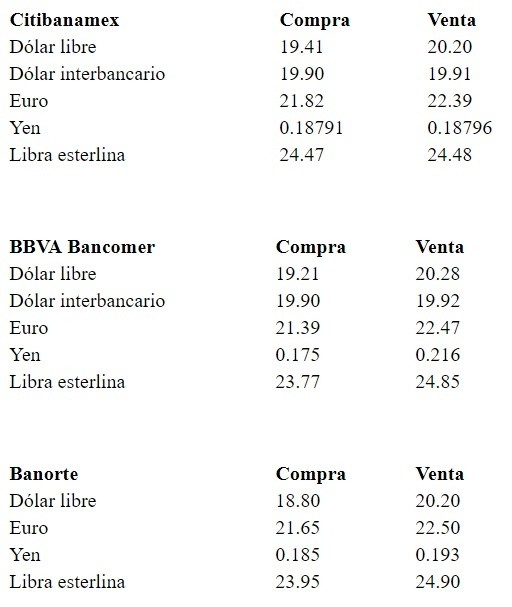 Esta mañana, el dólar libre abre la jornada sin cambios respecto al cierre previo, se vende hasta en 20.28 pesos y se compra en un mínimo de 18.80 pesos, en bancos de la Ciudad de México.De acuerdo con Banco Base, existen las dudas sobre la veracidad de los comentarios del presidente de Estados Unidos, Donald Trump, en la cumbre del G-7 en donde dijo que oficiales de China se habían puesto en contacto para reanudar negociaciones porque estaban desesperados por alcanzar algún acuerdo.Hasta hoy no hay un pronunciamiento oficial por parte de China sobre las llamadas e incluso el ministro de exterior del país asiático comentó que no tenía conocimiento de lo que señalaba Trump, lo que resta credibilidad a los comentarios del presidente estadounidense y pone en duda su capacidad para que se logre un acuerdo en el futuro cercano.Por otro lado, en México se dieron a conocer indicadores más favorables, lo que ha contribuido a que el peso muestre una recuperación moderada.Por su parte, el presidente de México, Andrés López Obrador, informó que se alcanzó un acuerdo con Grupo Carso, IEnova y TC Energy Corp, sobre las condiciones de contratos de gaseoductos en el país.De acuerdo a lo mencionado en la conferencia matutina, el acuerdo permitirá un ahorro de 4.5 mil millones de dólares para la Secretaría de Hacienda y ayudará a que siga habiendo inversión en el sector.En este contexto, durante la sesión, se espera que el tipo de cambio cotice entre 19.85 y 20.05 pesos por dólar.A su vez, el Banco de México (Banxico) informa en el Diario Oficial de la Federación (DOF) que el tipo de cambio para solventar operaciones denominadas en moneda extranjera pagaderas en el país se ubica en 19.9086 pesos por dólar.En tanto, las Tasas de Interés Interbancarias de Equilibrio (TIIE) a 28 y 91 días se colocan en 8.2750 y 8.2370 ambas con un retroceso de 0.0025 y 0.0167 puntos porcentuales, respectivamente.AC