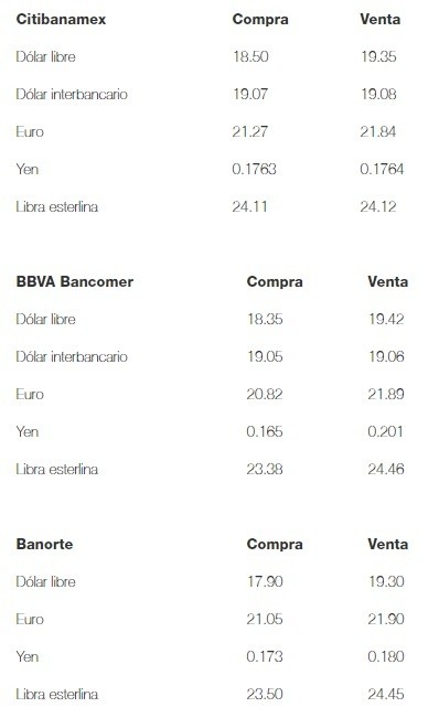 El dólar libre inicia la sesión de este martes con un retroceso de seis centavos frente al cierre de ayer, al venderse hasta en 19.42 pesos; y se compra en un precio mínimo de 17.90 pesos en sucursales bancarias de la Ciudad de México.De acuerdo con Banco Base, el peso abre la sesión con apreciación, siendo una de las divisas más apreciadas en la canasta de principales cruces y la de mayor avance entre las divisas de economías emergentes.La institución financiera precisó que ello se debe principalmente dos factores: la víspera el presidente de Estados Unidos, Donald Trump, reconoció el trabajo de México para frenar el flujo migratorio, y por el momento está descartada la posibilidad de imponer aranceles a importaciones provenientes de México.Por otra parte, la Organización de Países Exportadores de Petróleo (OPEP) confirmó que limitará la producción petrolera nueve meses más, aunque esto no ha presionado al alza los precios del crudo al comienzo de la sesión.Señaló que es probable que en el corto plazo el tipo de cambio avance de forma moderada hacia el soporte de 19.05 pesos por dólar, nivel que de ser perforado llevaría al tipo de cambio al nivel clave de 19 pesos.En la sesión de este día, expuso, se estima que el tipo de cambio cotice entre 19.00 y 19.15 pesos por dólar.A su vez, el Banco de México (Banxico) informa en el Diario Oficial de la Federación (DOF) que el tipo de cambio para solventar operaciones denominadas en moneda extranjera pagaderas en el país se ubica en 19.0760 pesos.Asimismo, las Tasas de Interés Interbancarias de Equilibrio (TIIE) a 28 y 91 días se colocan en 8.4850 y 8.4818 por ciento, la primera con pérdida de 0.0037 puntos y la segunda con avance de 0.0068 puntos porcentuales, en ese orden.OA