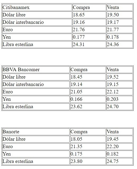 Esta mañana, el dólar libre inicia con un retroceso de seis centavos en comparación con el cierre de ayer y se vende hasta en 19.52 pesos; se compra en un mínimo de 18.05 pesos, en sucursales bancarias capitalinas.De acuerdo con Banco BASE, el peso inicia la sesión con una apreciación, recuperando terreno luego de tres sesiones consecutivas de pérdidas frente al dólar, fortalecimiento que se debe a diversos factores.Entre ellos, que varias divisas de economías emergentes y de países productores de petróleo ganan, ante un incremento en los precios del crudo. Así como al optimismo sobre la próxima reunión entre el presidente de Estados Unidos, Donald Trump y su homólogo de China, Xi Jinping, en la cumbre del G-20.El Grupo Financiero señaló que el Secretario del Tesoro de Estados Unidos Steven Mnuchin, dijo en entrevista que tiene esperanza en que se alcance un acuerdo entre ambos países.El optimismo con respecto a la reunión de mandatarios es moderado, pero también contribuye con el fortalecimiento de los precios del petróleo y con las ganancias del mercado de capitales en Europa.Indicó que otro factor importante fue el que Donald Trump volvió a elogiar los esfuerzos de México para contener el flujo de migrantes provenientes de CentroaméricaY aunque los efectos de sus comentarios sobre el tipo de cambio fueron limitados, sigue siendo relevante la opinión de Trump con respecto al acuerdo migratorio entre ambos países.Por su parte, en México, el subsecretario de Hacienda, Arturo Herrera, aseguró que Pemex presentará su plan de negocios en los próximos 10 días, la información se publicará una vez de ser aprobada por el Consejo de Administración de Pemex y por la Secretaría de Hacienda y Crédito Público.De acuerdo con Herrera, una vez que se reciba y analice, se podrá “estimar cómo va a ser percibido por las calificadoras”, estos comentarios son relevantes luego de que se diera a conocer que durante mayo la producción petrolera de Pemex se contrajo a una tasa anual de 10.1 por ciento.Por último, la entidad financiera expuso que en la conferencia matutina del presidente, Andrés Manuel López Obrador, el director general de Pemex, Octavio Romero, dijo que la caída en la producción de mayo está relacionada con problemas operativos.En este contexto, se espera que este miércoles el tipo de cambio cotice entre 19.15 y 19.25 pesos por dólar.A su vez, el Banco de México (Banxico) informa en el Diario Oficial de la Federación (DOF) que el tipo de cambio para solventar operaciones denominadas en moneda extranjera pagaderas en el país se ubica en 19.2271 pesos.Asimismo, las Tasas de Interés Interbancarias de Equilibrio (TIIE) a 28 y 91 días se colocan en 8.4951 y 8.4875 por ciento, ambas con pérdidas de 0.0042 y 0.0050 puntos porcentuales, respectivamenteAC