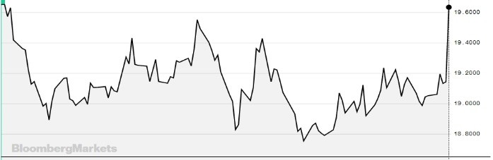 Gráfica de Bloomberg que muestra el tipo de cambio Peso (MXN) - Dólar (USD) en lo que va del año. ESPECIAL