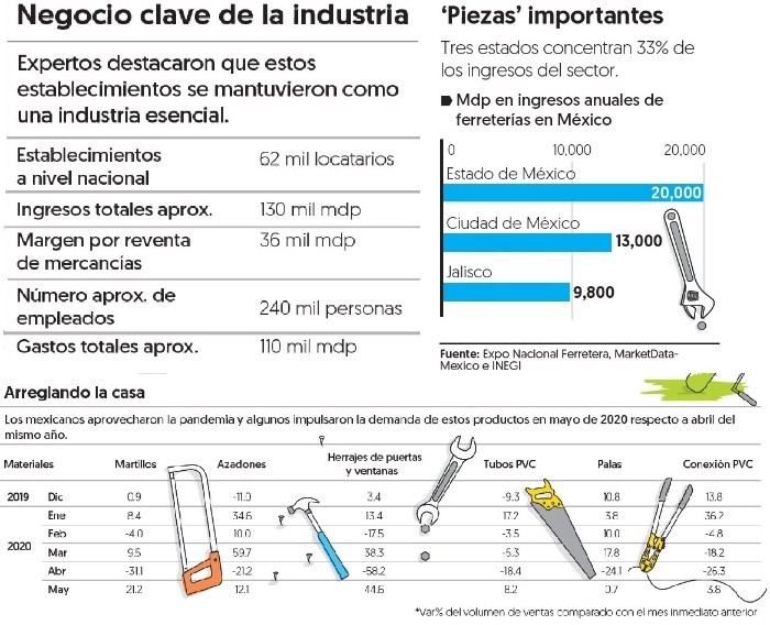 La jornada de la Sana Distancia para evitar los contagios del coronavirus obligó a los mexicanos a pasar más tiempo en su hogar, lo que contribuyó a despertar el interés de las personas por la cocina, la jardinería y también por implementar mejoras en sus viviendas, lo que impulsó hasta 44 por ciento las ventas de palas, martillos, herrajes de puertas y ventanas, tubos y conexiones. Aunque la suspensión temporal de actividades no esenciales provocó un desplome de 30 por ciento en el Producto Interno Bruto (PIB) de la construcción en México en el segundo trimestre de 2020, la tendencia de ‘hágalo usted mismo’ contribuyó a ‘salvar’ parcialmente las ventas de las ferreterías del país. Javier García, director de Expo Nacional Ferretera, destacó que estos establecimientos buscaron nuevas formas para acercarse a los clientes, además de ofrecer facilidades para que los mexicanos mejoren su casa por su cuenta. “El hágalo usted mismo resultó importante para compensar un poco la gran caída que tuvo la demanda por los sectores de construcción e industrial (…) Esto ayudó a mantener a las ferreteras trabajando, principalmente a las pequeñas y medianas”, explicó. De abril a mayo de 2020 aumentó la demanda de herrajes para puertas y ventanas en 44.6 por ciento, martillos en 21.2 por ciento, 8.2 por ciento en tuberías de PVC, 7.7 por ciento en pintura y 3.8 por ciento de conexiones de PVC, de acuerdo con el INEGI. “Se prevé que en 2020 las ventas al por menor de materiales para la construcción podrían caer hasta 9 por ciento (…) no es tan severo como en otros sectores considerando la suspensión de actividades en muchas industrias”, de acuerdo con el reporte “Ferreterías: Realidad comercial post covid-19” de Market Data México. Jorge Sans, miembro del directorio de Ferreteros Online afirmó que han habido cambios importantes de consumo en la industria ferretera, ya que las personas han invertido más en el remodelamiento de sus casas debido a que pasan mayor tiempo en ellas y las han convertido en su lugar de trabajo. “Según el ranking del Financial Times de las 100 empresas que más prosperaron durante la pandemia, Home Depot ocupa el lugar 24 y no es la única empresa asociada a la ferretería que se encuentra dentro de la lista”, afirmó Sans. Valeria Berlfein, Expert Solution director Latam Worldpanel Division, afirmó que la nueva normalidad ha traído cambios de hábitos que benefician a las ferreteras. “El nuevo mundo comienza con cambios en los hábitos, como en qué se planea gastar, donde el 36 por ciento de la población declaró que ahorrará su dinero para emergencias, el 21 por ciento para pagar deudas y 14 por ciento lo invertirá en comprar productos para mejorar el hogar”, aseguró. Walmart informó en su reporte del segundo trimestre de 2020 que tuvieron una mayor demanda de pintura para el hogar que en productos de cuidado personal. Por esto la Asociación Nacional de Fabricantes de Pinturas y Tintas (Anafapyt), presentó su campaña #QuédateEnCasa- YPintaTuHogar, con diferentes recomendaciones para realizar actividades lúdicas en familia y renovar los hogares. “Debemos enfocarnos en lo urgente, que es la recuperación del país, en mantener empleos y generar actividad económica aportando lo que está en nuestras manos y es algo en lo que todas las industrias debemos contribuir de forma responsable”, comentó Víctor Leal, presidente de Anafapyt. Comercio electrónico, nueva salidaJavier García, director de Expo Nacional Ferretera, dijo que el ecommerce se convirtió en una nueva forma en la que muchas empresas ferreteras buscan acercarse a sus clientes. “Mantenerse en contacto con las ferreteras del barrio, tratando de mantener un buen stock en estas tiendas, junto con ventas en línea, impulsó mucho las reparaciones en casa, todos nosotros hemos salido a buscar herramientas”, comentó el directivo. Señaló que empresas grandes como The Home Depot tienen estrategias de comercio electrónico más trabajadas, que ofrecen el traslado incluido. Jorge Sans, miembro del Directorio de Ferreteros Online, compartió que la industria de la ferretería en México representa el 2 por ciento del PIB, lo que equivale a casi 24 millones de dólares y dentro del sector retail consideró que es la que más oportunidades tiene de crecer. “A raíz de la contingencia, el consumo de productos de ferreteros ha mostrado un crecimiento del 40 por ciento y el e-commerce representa un incremento en ventas de más de 10 veces, ambos en comparación al año pasado”, aseveró en su participación en el webinar “El impacto digital en el mundo ferretero”.