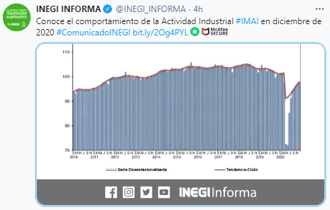 Debido a la crisis generada por la pandemia de COVID-19, la producción industrial en México se desplomó 10.0% el año pasado, su peor caída a tasa anual desde 1995 cuando cayó 10.9%, revelan los datos más recientes publicados por el Instituto Nacional de Estadística y Geografía (Inegi).Los dos componentes que se vieron más afectados por la pandemia fueron la industria de la construcción, con una caída de 17.2% anual; así como las actividades manufactureras, con una contracción de 10%.Sin embargo, el rebote de la manufactura ha sido mucho mejor desde el punto más álgido del confinamiento en abril-mayo, impulsada por la fortaleza de la demanda externa, mientras que la construcción sigue rezagada ante la incertidumbre doméstica.Por su parte, la minería fue más estable en -1.1%, beneficiada por la continuación de las operaciones en el sector petrolero desde el inicio de la pandemia, aunque todavía limitada por factores internos. Por último, los servicios públicos (electricidad, agua y gas) cayeron 5.3% ante la contracción económica.Con base en cifras ajustadas por estacionalidad, la producción industrial reportó una mejora marginal al cierre del año pasado con un avance mensual de 0.1%, con lo que suma siete meses al alza desde la reapertura de la economía."Consideramos que el resultado es positivo dado un entorno más complejo en cuanto a la evolución de la pandemia, tanto en México como en Estados Unidos. Como resultado, la actividad en términos absolutos se mantiene cercana a los niveles registrados a mediados de 2011 y alrededor de 3.5% debajo de lo observado en febrero, antes del choque por la pandemia", comentó Juan Carlos Alderete, director de análisis económico de Banorte.Como ha sido el caso desde la reapertura, las manufacturas continúan siendo el principal motor del desempeño, aumentando 1.1% en diciembre respecto al periodo inmediato anterior. Al interior, 13 de las 21 categorías fueron positivas.En opinión del especialista, estos sectores han estado apoyados por: una adaptación más eficiente en las plantas manufactureras y maquiladoras para cumplir con las medidas sanitarias; menor incertidumbre en Estados Unidos tras la elección presidencial; y una fuerte competitividad relativa de estos productos en el mercado estadounidense.Por su parte, la construcción fue la más afectada en -2.7%, aunque sólo tras dos meses de fuertes expansiones. En específico, la edificación fue la más impactada con una contracción de 5.1%. Mientras tanto, la ingeniería civil sumó un segundo mes a la baja en -1.0%, reflejando todavía retos importantes para el sector.NR