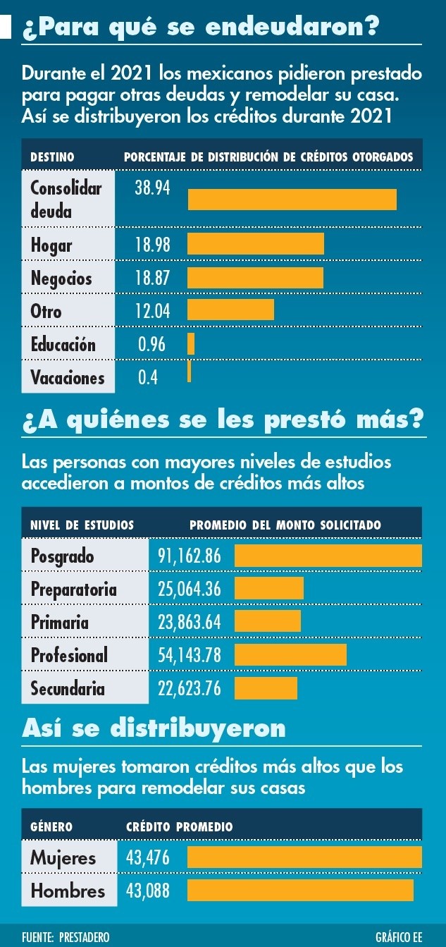 El encierro durante la pandemia provocó un incremento en las solicitudes de créditos para realizar ajustes y remodelaciones al hogar.Pintar la casa, improvisar una oficina, comprar equipo de computo, fueron algunas de las adecuaciones que se realizaron en algunos hogares.Lucía ocupó un espacio de su sala para colocar un escritorio donde trabajar, pintó esa zona, compró una impresora y una laptop nueva. Estos gastos los asumió de sus ahorros pero cientos de familias recurrieron a un crédito para ajustar su casa a las nuevas necesidades durante la pandemia.De acuerdo con el informe “Para qué solicitan crédito los mexicanos 2021”, publicado este 28 de febrero y realizado por Prestadero, fintech de fondeo colectivo, los créditos personales para remodelaciones en el hogar están en incremento y el año pasado ocuparon la segunda posición como los préstamos más solicitados a la plataforma.“Debido a la pandemia los mexicanos tuvieron que confinarse y empezaron a adecuar sus espacios, por lo que se vio un salto de créditos para el rubro del hogar”, informó Prestadero.Por ejemplo, de representar 2.06% de los créditos que otorgaron en el 2019, para el 2020 subió a 14.59% y a 16.25% para el 2021.En promedio los financiamientos para remodelaciones en el hogar fueron de 43mil 300 pesos, siendo las mujeres quienes obtuvieron los montos más altos para este fin, según datos del estudio.“Lo que vimos en el rubro hogar es que muchas personas dijeron: quiero remodelar mi casa, quiero poner una oficina, quiero construir una nueva sala, nuevo cuarto, arreglar el techo, entre otras cosas”, expresó Gerardo Obregón, CEO de Prestadero.Fue por esto que las solicitudes de créditos para mejoramientos en las viviendas aumentaron considerablemente, en el2019 eran casi nulos los préstamos para este fin y en los últimos dos años se dispararon, puntualizó.Mientras la entrega de financiamientos para darle una manita de gato a los hogares aumentó, las solicitudes para viajes y temas educativos reportaron crecimientos menos acelerados.¿Qué considerar en estos créditos?Primero revisa tus finanzas, si ya tienes deudas piensa si es necesario adquirir otra para remodelar la casa y busca estrategias más económicas para darle un toque diferente a tu vivienda; puede ser desde el reacomodo de muebles, agregar algunas plantas y optimizar espacios.“Es probable que tengas muchas ganas de remodelar tu hogar, pero si tienes deudas hasta el cuello, no has logrado ahorrar, ni ajustar tu presupuesto y vives al día, más vale poner en orden tus finanzas antes de animarte por un préstamo”, recomendó Prestadero.Si después de la revisión de tus finanzas, definiste que puedes tomar un crédito, entonces determina cuánto dinero requieres para los cambios que necesitas. Y aunque tu capacidad de pago te dé para obtener un monto importante y superior a lo que necesitas, no tomes todo si no lo requieres.