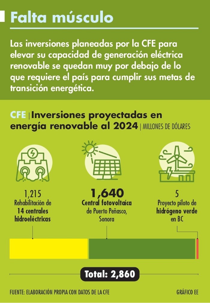 Para cumplir con su compromiso de 35% de generación eléctrica limpia al 2024, México necesita una capacidad de producción adicional de fuentes de este tipo de 9 mil 500 megawatts, y la Comisión Federal de Electricidad (CFE) tiene planes para la instalación de apenas mil 350 megawatts de energía limpia en los próximos tres años, lo que es 85% menos de lo requerido, al tiempo que pretende aumentar la capacidad instalada de ciclos combinados para consumir 60% más gas natural importado, lo que elevaría la dependencia energética del país.Para alcanzar la meta de 35% de generación eléctrica mediante energías limpias, pasando del actual 29%, se requerirá entonces una inversión de 10 mil millones de dólares, unos 210 mil millones de pesos, monto que equivale a dos tercios del presupuesto para todas las actividades de la CFE y es casi cuatro veces lo que la estatal planea invertir en sus propios proyectos de energías limpias, por lo que el organismo no podrá llegar a esta meta si se detiene el crecimiento de la inversión privada, explicó Leopoldo Rodríguez Olivé, presidente de la Asociación Mexicana de Energía Eólica (AMDEE).Así lo explicó el empresario durante la presentación del México Wind Power que se llevará a cabo los días 23 y 24 de marzo en la Ciudad de México.“La política energética de cualquier parte del mundo debe tener hoy en el centro el combate al cambio climático, como sea, en redes, con eficiencia, con renovables, pero que se lleve a cabo”, dijo.En México se llegó en 10 años a una capacidad de 7 mil 154 megawatts eólicos en operación, que es 9% de la capacidad instalada del país bajo todas las tecnologías, crecimiento que requirió inversiones de 2 mil 500 millones de dólares y que suman 12 mil 500 millones de dólares en total, a decir del empresario, gracias a que había certeza jurídica a largo plazo, a que dos reguladores, la Comisión Reguladora de Energía (CRE) y el Centro Nacional de Control de Energía (Cenace) con visión de piso parejo, proyectos claros a futuro del gobierno en sustitución de fósiles y condiciones atractivas de financiamiento.Sin embargo, recordó que se está discutiendo un modelo en el que se pretende privilegiar la generación fósil que inevitablemente traerá energía más cara y que cancela la transición energética.“El tema que está viviendo hoy Europa y en particular España no tiene que ver con el modelo de mercado sino con la dependencia de combustibles fósiles importados y con el conflicto bélico se ha recrudecido”, aseguró.Entre todos sus proyectos de energía limpia, la CFE proyecta una inversión de 2mil 860 millones de dólares para el 2024, de los cuales 893 millones serán para las nueve centrales hidroeléctricas ya adjudicadas, mientras que las restantes cinco costarán alrededor de 322 millones de dólares por central, según los montos calculados por la estatal en la licitación. A la vez, el proyecto piloto de producción de hidrógeno verde costará cinco millones de dólares y la central forovoltaica de Puerto Peñasco, en Sonora, 1,640 millones de dólares.Emergencia climáticaBen Backwell, CEO del Global Wind Energy Council (GWEC) detalló que a nivel global, en 2020 se logró una instalación de 94 gigawatts a partir del viento y para el 2021 instalados se añadió una cantidad similar, al sumar la energía eólica offshore que crece a buen ritmo en Europa y China, principalmente.Sin embargo, la industria debería estar creciendo cuatro veces lo que está creciendo hoy si se quiere llegar a las metas ambientales, de contención de emisiones y de seguridad energética, puesto que es importante tener una aceleración tomando en cuenta que junto con la energía fotovoltaica será responsable de más de 60% de la energía del mundo.“Estamos en una situación de precios muy altos de combustibles fósiles que llevan a récords en los precios de la electricidad, llegando a una crisis energética global que es síntoma de la transición desordenada de combustibles fósiles a renovables y los gobiernos deberían moverse de manera más decisiva hacia la generación que no requiere combustibles, o veremos cada vez situaciones de mayor riesgo para los consumidores”, dijo.Ramón Fiestas, presiente del GWEC del capítulo Latinoamérica, detalló que México había sido el segundo país de mayor crecimiento en instalación de esta tecnología, después de Brasil, pero en los últimos años (a partir de esta administración) la situación se estancó, igual que en Argentina.“Estamos en una situación de verdadera crisis climática, que se suma a la crisis energética y México no tiene suficiente despliegue de energía para atender sus propias necesidades porque no ha puesto el foco en las fuentes que sí tiene pero que requieren tecnología y que son el sol y el viento”, aseguró.Numeralia10 mil MDD de inversión se requieren al 2024 para generar la capacidad eléctrica que le permita al país cumplir con sus compromisos de energía limpia, afirma la AMDEE.2 mil 860 MDD es el monto de inversión que plantea la CFE en sus proyectos de generación eléctrica limpia para los próximos tres años.