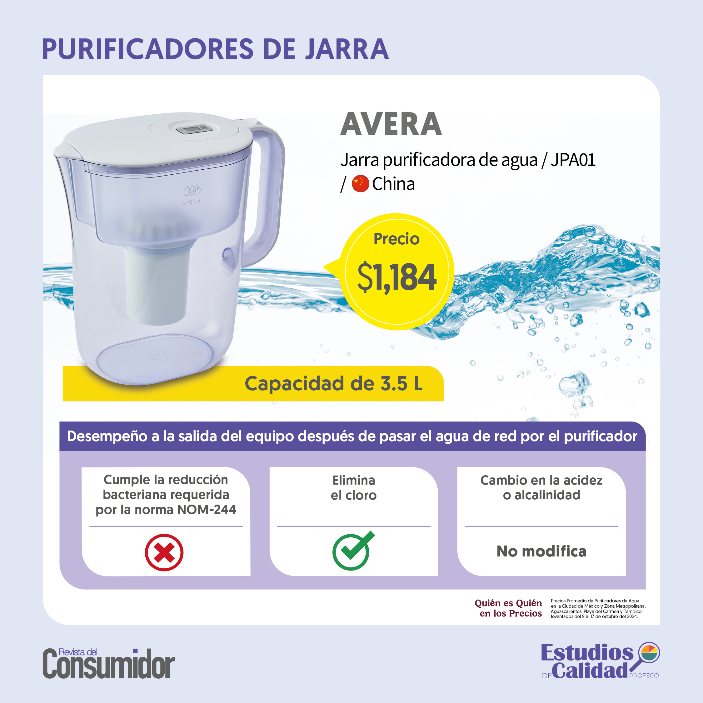 El agua es indispensable para la vida humana. Un cuerpo humano no funciona sin este líquido vital; de acuerdo a la Organización Mundial de la Salud (OMS), el agua es esencial para el cuerpo humano en cualquier etapa de la vida. El Gobierno de México, por su parte, recomienda consumir de 2 a 3 litros de agua diariamente aunque las necesidades pueden variar de acuerdo a edad, sexo, dieta y tipo de actividad física.El cómo bebemos agua depende de individuo a individuo. Una de las muchas maneras de consumo es por medio de purificadores de agua, máquinas con filtros que se encargan de remover las bacterias y "purificar" el agua de la llave, para volverla apta al consumo humano. Pero, ¿qué tan confiables son estos aparatos? ¿De verdad purifican el agua? ¿Es cierto que le quitan las bacterias? En su más reciente estudio de calidad, la Procuraduría Federal del Consumidor (Profeco) Profeco analizó cinco purificadores de agua que son populares en el mercado pero que, no obstante, no cumplen con la reducción bacteriana que requiere la Norma Oficial Mexicana (NOM-244-SSA1-2020) que "evalúa la eficiencia en reducción bacteriana en equipos y sustancias germicidas para tratamiento doméstico de agua". ¿Qué implica esto? Los productos que no cumplen con las Normas Oficiales Mexicanas pueden ser sujetos a medidas precautorias y sus proveedores a requerimientos y, en su caso, a procedimientos por infracciones a la ley.Para consultar el estudio completo de la Profeco, es posible consultar la revista oficial aquí. FS