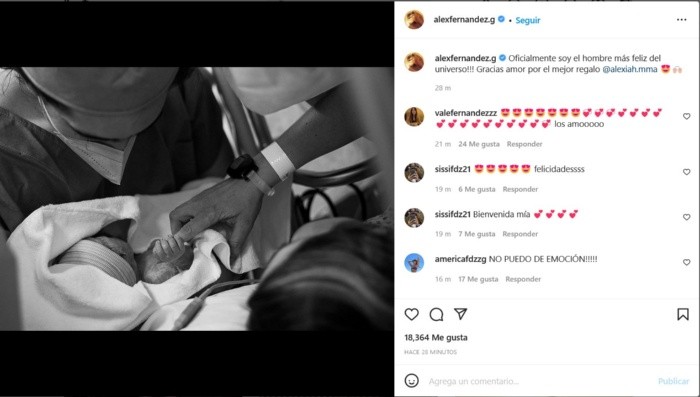 Pese a los complicados momentos que atraviesa la familia Fernández ante la transmisión de la serie no autorizada sobre el “Charro de Huentitán”, Alex Fernández, hijo de Alejandro Fernández “El Potrillo” y nieto de “Chente”, compartió en sus redes sociales que ha nacido “Mía”, su primogénita.Desde que su ahora esposa Alexia Hernández anunció junto a Alex Fernández que estaban esperando a su primer bebé, la pareja ha compartido fotografías y videos de todo el proceso del embarazo, incluso con un emotivo video en el que, junto a la familia, revelaron el género de “Mía”, confirmando que sería niña.“Oficialmente soy el hombre más feliz del universo!!! Gracias amor por el mejor regalo”, escribió Alex Fernández en su Instagram, donde compartió una fotografía de su bebé, tomando la mano de Alexia Hernández.De acuerdo a la revista “Hola”, Mía nació por la mañana a las 09:45 horas de este jueves 17 de marzo, pesando 3.15 kilos y midiendo 48 centímetros. Mía es la segunda nieta de Alejandro Fernández “El Potrillo”, quien debutó como abuelo con el nacimiento de Cayetana, hija de Camila.Hace tan sólo unos días, la familia Fernández tuvo una celebración especial para festejar el primer año de Camila, reunión que motivó a la dinastía Fernández a compartir fotografías del encuentro que vivieron.Alex Fernández y Alexia Hernández se casaron en una celebración privada en Puerto Vallarta el pasado 24 de junio del 2021, y aunque este encuentro fue ante las leyes civiles, la pareja había anunciado sus planes de también casarse con una ceremonia religiosa, sin embargo, ante la hospitalización de Vicente Fernández, decidieron postergar el enlace confiando en que “Chente” se recuperara y pudiera acompañarlos en tan especial momento, no obstante, “El charro de Huentitán” falleció el 12 de diciembre del 2021.Ante las complicaciones de salud de Vicente Fernández, su nieto anunció que la nueva fecha de boda sería en 2022: “Guarde la nueva, nueva, nueva fecha. 11.11.22”, dijo Alex Fernández respecto a cuándo será la boda religiosa.JM