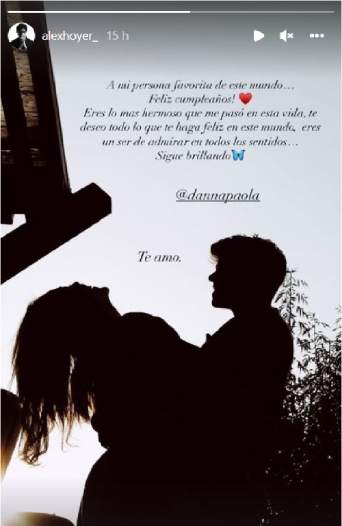 Este jueves la actriz Danna Paola está celebrando su cumpleaños, una mujer que comenzó su carrera en la actuación desde muy pequeña y que más tarde también decidió aventurarse en el mundo de la músicaCon tan solo 27 años ha logrado grandes cosas en el mundo artístico y de la actuación, ahora su novio Alex Hoyer la acompaña en su vida y la felicitó con un emotivo mensaje a través de sus redes sociales.Desde que confirmaron su relación, en abril de este año, Danna y Alex se han mantenido herméticos cuando se trata de demostrar su amor públicamente y, más que por falta de amor, ambos artistas han asegurado que lo hacen como una medida preventiva para impedir que rumores, chismes y comentarios mal intencionados contaminen la relación que han construido, tan importante para ambos.Sin embargo, el cuidado con que mantienen su noviazgo no impidió que Hoyer se tomara un momento para felicitar a Danna en sus redes sociales en una fecha tan especial. A primera hora del día, el cantante de 24 años escribió lo siguiente: "A mi persona favorita de este mundo… Feliz cumpleaños! Eres lo más hermoso que me pasó en esta vida, te deseo todo lo que te haga feliz en este mundo, eres un ser de admirar en todos los sentidos… Sigue brillando. Te amo".Danna Paola no tardó mucho para compartir la publicación en sus historias de Instagram, pero este no fue el único post que colgó en su cuenta, pues han sido muchas y muchos los que la han felicitado, con dedicatorias en las que exaltan el ser humano tan especial que es, el cual siempre despide sonrisas y le demuestra a los demás que siempre hay motivos para disfrutar la vida.A partir que la relación entre los dos se hizo oficial, como temían, los rumores no se han hecho esperar, pues hubo quienes aseguraron que Hoyer se interesó en Danna, porque ella tiene mayor reconocimiento del público, pues forjó su carrera profesional desde muy chica. En cambio, Alex se dio a conocer luego de concursar en la segunda temporada de "La Voz México", show en el que formó parte del equipo de Ricky Martin.En otra ocasión, una revista de circulación nacional sugirió que Hoyer abusaba de ella emocionalmente, por lo que Danna Paola salió hablar, siendo muy tajante con su aclaración: "Lo que me preocupa es que los medios amarillistas, como esta revista, sigan subestimando la valentía y la fuerza de una mujer en sus ejemplares… Yo no me dejo maltratar ni por un novio, ni por nadie".El estilista Omar Álvarez fue uno de los amigos de Danna Paola que compartió un adelanto de como comenzaron los festejos de cumpleaños de la cantante, con un vídeo donde se ve a Danna sentada frente a una rebanada de pastel, mientras un grupo de personas cantan "Happy birthday to you", más adelante, se escucha como dice emocionada que ha alcanzado los 27 años: "I'm 27!".Otras de las personas cercanas a la cantante que la felicitó fue su hermana mayor, Vania Rivera Munguía, quien dijo que la cantante le cambió la vida desde el momento en que nació.MF