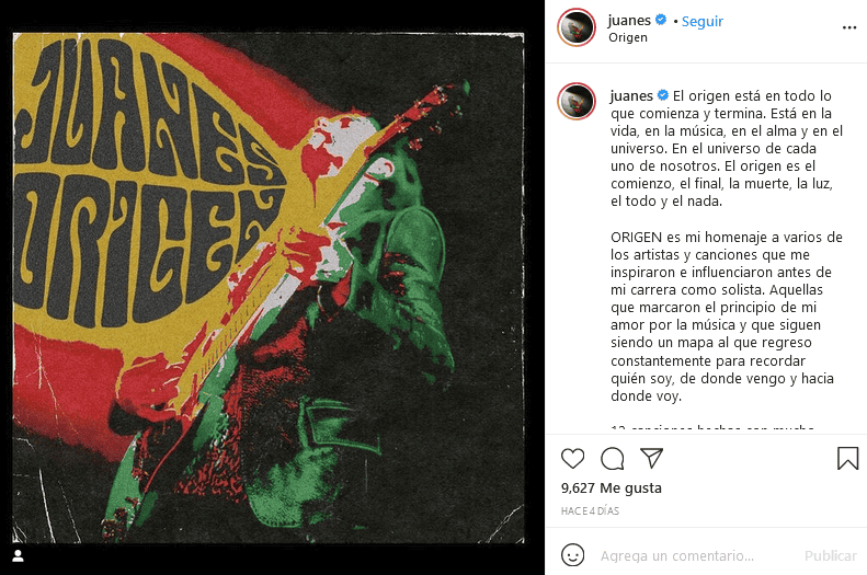 Amazon Prime Video anunció que el 28 se estrenará el documental Amazon Exclusive: “Origen”, con el que se mostrará un peculiar recorrido por la trayectoria del cantautor colombiano Juanes, así como imágenes nunca antes vistas de los primeros años del cantante y entrevistas exclusivas con Juan Luis Guerra, Joaquín Sabina Fito Páez y Ziggy Marley.“El veinticinco veces ganador del Grammy/Latin Grammy, Juanes, y Universal Music Latin Entertainment, anuncian como fecha de lanzamiento del 28 de mayo para el décimo álbum ‘Origen’, de la superestrella colombiana multiplatino del rock, y su documental complementario Amazon Exclusive en Amazon Prime Video. Los fans pueden ver el primer tráiler oficial del documental y comenzar con la precompra/precarga del álbum. En preparación para el álbum y el documental, un episodio enfocado en Juanes de la serie biográfica, ‘Mi Historia’, se lanzará el 19 de mayo en la app de Amazon Music, en donde Juanes ofrece una mirada íntima a los inicios de su carrera”, explicó Amazon Prime Video.“Origen” se lanzará en conjunto con un documental Amazon Exclusive, mostrando presentaciones de las nuevas canciones en escenarios de cápsula del tiempo, al estilo de programas de televisión clásicos de tres diferentes eras. Con el productor ejecutivo José Tillán al frente, ganador del Emmy y múltiples LATIN Grammy, el coproductor ejecutivo Jesús López, Chairman de Universal Music LATAM Iberia, y el director Kacho López, múltiple ganador del LATIN Grammy.El especial también muestra a Juanes hablando sobre la realización del álbum e interactuando con sus colegas compositores – Juan Luis Guerra, Joaquín Sabina Fito Páez y Ziggy Marley – quienes comparten sus primeras reacciones a las nuevas interpretaciones de su trabajo. Los espectadores también verán a Juanes abrirse al público de una forma muy personal, explicando cómo estas canciones lo influenciaron, y también compartiendo imágenes nunca antes vistas de él y su familia, en sus primeros años.Como el embajador global líder del rock latino por dos décadas, Juanes ha conquistado a fans alrededor del mundo con su distintivo estilo construido sobre una base de composiciones creadas con inteligencia, una profunda pasión por el rock y un respeto similar por los ritmos indígenas y tradicionales de su natal Colombia y América Latina. Ahora, usando sus habilidades como un maestro de la música, perfeccionadas a lo largo de su carrera, regresa con pasión a sus raíces para compartir una brillante colección que re imagina algunas de las canciones y artistas más importantes que dieron forma a los inicios de su propia visión musical.“Nuestro Origen es en donde el rumbo de nuestra vida y de nuestro lugar en el universo comienza y cobra forma. Para mí, es construido sobre el amor por la música que me fue inculcado por mi familia, el aprecio a mi cultura y el descubrimiento de las canciones y artistas que conmovieron mi alma por primera vez. ‘ORIGEN’ es mi tributo personal a muchos de esos artistas y canciones que tuvieron mayor influencia en mí antes de mi carrera como solista. Estas son las canciones que continúan siendo un mapa al que constantemente regreso para recordar quién soy, de dónde vengo y hacia dónde me dirijo. Es la música en lo más profundo de mi corazón, que nunca será olvidada”, expresó Juanes durante el lanzamiento de los avances.Coproducido por Juanes y el ganador de múltiples Grammy, el productor Sebastian Krys (quien también estuvo al frente de los recientes galardonados álbumes para Elvis Costello) este energizante álbum cuenta con instrumentación y producción de alta precisión a lo largo de una lista de canciones que abarcan estilos originales tan diversos como el tango, merengue, heavy metal, folk, reggae, vallenato, pop y claro, rock – en donde frecuentemente Juanes completamente re imagina el sonido y el estilo como fusiones a través de múltiples géneros.Los dos sencillos del álbum recién lanzados por adelantado han brindado una primera prueba que los mismos ya han causado emoción de parte de los fans y los críticos por igual, mientras la versión adrenalizada de rock y góspel de Juanes de la canción ‘El Amor Después del Amor’ de Fito Páez ya ha sido alabada como “Una de mejores canciones nuevas de la primavera”, por NPR.“Este es Juanes como nunca lo habías visto o escuchado antes. El grande del rock colombiano suena como un artista renacido… y lo lleva al máximo nivel, trayendo una ejecución alentadora y conmovedora como un símbolo de esperanza y renacimiento”.También Juanes hace un cambio de enfoque al lanzar una versión personalmente introspectiva y profundamente emocional del clásico global de Bruce Springsteen: “Dancing On The Dark”.“Una de las mejores versiones de una canción de Bruce que he escuchado. No puedo recordar la última vez que escuché una versión de una canción de Bruce que fuera la mitad de buena que esta, tomó una canción conocida y la hizo suya, que es como haces que el Rock and Roll sea verdaderamente universal, y como Springsteen, él se preocupa mucho por la gente a la que le está cantando y sobre la que canta”, comentó Dave Marsh, de Springsteen y conductor de E-Street Radio.*Rebelión - Joe Arroyo*Volver - Carlos Gardel*Nuestro juramento - Julio Jaramillo*La bilirrubina - Juan Luis Guerra*Todo hombre es una historia - Kraken*El Amor después del amor - Fito Páez*Could you be loved - Bob Marley*Sin medir distancias - Diomedes Díaz*No tengo dinero - Juan Gabriel*Dancing in the dark - Bruce Springsteen*De oro - Familia Andre*Y nos dieron las diez - Joaquín SabinaGC