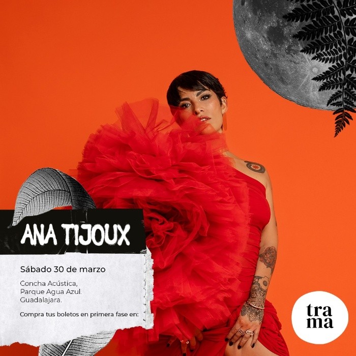 La rapera franco-chilena Ana Tijoux será el evento estelar del Encuentro Trama en marzo de 2024 con un concierto al aire libre el próximo 30 de marzo del 2024 en la Concha Acústica del Parque Agua Azul, se resalta en el comunicado emitido por el proyecto cultural.La nombrada como la mujer rapera más importante de habla hispana en la historia de la música según la revista Billboard vuelve a México y lo hará solo a Guadalajara con la gira de su nuevo álbum “Vida”. Junto con su concierto en Santiago de Chile estas serán las únicas dos paradas de la cantante de himnos como “Antipatriarca” y “1977” en América Latina.La última vez que Ana Tijoux estuvo en Guadalajara fue en 2016. Junto a la rapera se presentarán otras músicas internacionales y locales en un festival que busca poner a las mujeres artistas al centro. El festival musical y cultural será de las 15:00 a las 23:00 horas. El parque Agua Azul será la sede de actividades de diversos formatos para infancias, así como madres, padres y cuidadorxs. Los boletos ya salieron a la venta en la plataforma digital Boleto Móvil y tendrán un costo especial de preventa de 450 pesos hasta el 31 de diciembre.Los boletos ya están disponibles en la siguiente liga https://boletomovil.com/evento/ana-tijoux-encuentro-trama-2024-03-30Con esta iniciativa, Encuentro Trama continúa con su misión de visibilizar y promover el trabajo de las mujeres en las artes y la cultura. Los ingresos obtenidos durante el Encuentro Trama permite el apoyo directo a artistas mujeres y disidencias, además de las gestiones para este encuentro cultural.El Encuentro Trama ha reunido a más de 50 artistas mujeres y disidencias en el marco del Día Internacional de la Mujer, celebrando el arte y promoviendo espacios de desarrollo y creatividad, creado por mujeres de Guadalajara y otros países como Chile, Cuba, Argentina, Italia y España.FS