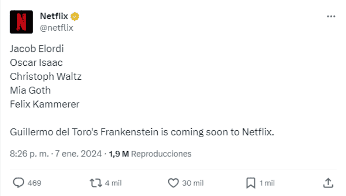 El actor Andrew Garfield, a quienes muchos fans ansiaban verlo convertido en Frankenstein, esto como parte de la nueva adaptación que Guillermo del Toro prepara para Netflix; se ha dado a conocer que el artista ya no interpretará al icónico monstruo, ya que se ha visto obligado a abandonar el proyecto.Fue en octubre pasado cuando el ganador del Oscar a Mejor director anunció que trabajaba en una nueva versión de este clásico del terror para streaming. Incluso, dio a conocer que el protagonista de "El increíble hombre araña" formaría parte del elenco.El rodaje estaba en marcha y todo parecía indicar que Garfield tendría un nuevo éxito en su carrera, pero las huelgas de actores y escritores que paralizaron Hollywood intervinieron en los planes y el actor tuvo que retirarse de la cinta. Sin embargo, el sitio Deadline ya reveló el nombre del encargado de sustituir a Garfield, se trata de la estrella de "Saltburn", Jacob Elordi.De acuerdo con el portal, los retrasos complicaron la agenda de Andrew, que ya estaba comprometido con otros papeles, y tuvo que dejar el papel de la criatura, mismo que ahora le pertenece a Elordi.Horas más tarde, esta noticia fue confirmada por Netflix a través de una publicación en las redes sociales donde presentó al nuevo elenco: "Jacob Elordi, Oscar Isaac, Christoph Waltz, Mia Goht y Felix Kammere. "Frankenstein" de Guillermo del Toro muy pronto por Netflix", escribieron.Según el propio Del Toro, las filmaciones habían iniciado en febrero del 2023, pero los conflictos en Hollywood estallaron tan solo tres meses más tarde, en mayo, pausando así todo tipo de proyecto.Hasta el momento es muy poco lo que se sabe sobre esta película, lo que es un hecho es que Isaac dará vida al doctor Victor Frankenstein, Goth será la novia de Frankenstein y Elordi el temible monstruo.Aunque Jacob Elordi no tiene una larga carrera en la industria como Andrew Garfield, ha alcanzado la fama y el reconocimiento gracias a sus participaciones en "Euphoria", "El stand de los Besos" y "Priscilla" cinta en la que dio vida al "Rey del rock".NA