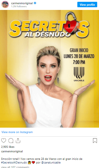 Carmen Muñoz está preparada para exponer temáticas que afectan a la sociedad en su nuevo talk show "Secretos al desnudo" de Unicable.Una de las condiciones de Carmen para hacer este formato fue que la dejaran conservar su esencia y su forma de ser."Estoy muy emocionada y feliz de unirme a la familia de Unicable con este proyecto, quiero agradecer a Raquel Rocha (directora del canal), por la confianza, y a Alexis Núñez, hemos estado trabajando de la mano en este proyecto, gracias por tus palabras, para mí es un sueño", dijo Muñoz en conferencia de prensa.El productor Alexis Núñez aseguró que no se recurrirá a lo fársico, como en formatos similares, o a historias falsas."En todos los talk shows he tenido el privilegio de que el tono es el de la realidad, no nos preocupa. Creo que somos auténticos, estamos muy vinculados a los estudios sociales y socioeconómicos y los estudios que hace el INEGI sobre las cosas que más les preocupan a los mexicanos, basado en eso es que hacemos una lista de temas y salimos a buscar a la gente involucrada en estos casos, lo que vemos, es la realidad."Secretos al desnudo" se estrenará el próximo lunes 28 de marzo a las 19:00 horas por Unicable. Las transmisiones serán de lunes a viernes.AF