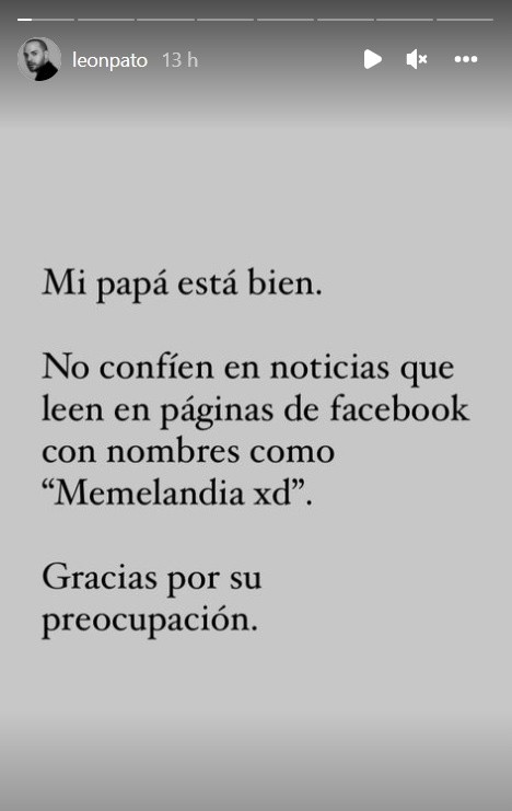 Los rumores del supuesto fallecimiento de César Bono estallaron este fin de semana en redes sociales; sin embargo, el propio actor y su hijo, Leonardo, aclararon que esto sólo eran fake news. César Bono fue operado de emergencia y tras estos comentarios de algunos internautas, reapareció en las redes sociales, donde afirmó que “va mejorando”.Asimismo, Leonardo Bono, desmintió que su padre estuviera muerto: “Gracias a Dios mi papá va mejor, echándole ganas, ha habido mejorías”, dijo. “Pero quizá ya no debería hablar más al respecto, pero ahorita estoy muy emputado porque una de mis tías le acaba de hablar a mi mamá llorando porque ella estaba normal y le hablaron para darle el pésame, ahorita una de mis mejores amigas me acaba de hablar llorando también”.Leonardo Bono pidió no compartir estas noticias falsas “que afectan a la gente”, toda vez que tachó de cruel a quien invente este tipo de información. “Yo vi la noticia y sé que es falsa y estoy tranquilo, pero mis amigos y la gente que quiere a mi papá, por qué hacerles pasar un mal trago por una mamada que qué ganan, neta está de la verga que inventen estas mamadas, discúlpenme, pero quería desahogarme”, dijo. César Bono fue hospitalizado el pasado 4 de marzo por una hemorragia por una úlcera.“Muchas gracias a todos mis amigos de los medios. Compañeros y a todos los que se han preocupado. Me encuentro estable y bien de salud. No corro peligro”, escribió Bono en Twitter en aquel entonces.AC