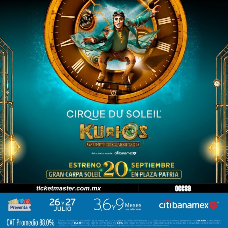 La magia del Cirque du Soleil regresa a Guadalajara con su espectáculo "KURIOS: El Gabinete de Curiosidades", que llegará a la ciudad el próximo 20 de septiembre. La Gran Carpa Soleil, instalada en Plaza Patria, será el escenario donde el público tapatío podrá disfrutar de esta producción que promete una experiencia inolvidable."KURIOS" nos transporta al fascinante mundo del steampunk, donde un inventor descubre un universo escondido lleno de maravillas. Este espectáculo lleva al público a través de un viaje donde la imaginación y la creatividad cobran vida. La trama sigue a un inventor que, al abrir la puerta a un mundo invisible, encuentra personajes extravagantes y situaciones asombrosas que desafían la realidad.Desde su estreno en Montreal en 2014, "KURIOS" ha recorrido 35 ciudades y ha sido visto por más de cinco millones de espectadores en todo el mundo. Con un elenco de 50 artistas de renombre internacional, el espectáculo ha sido aclamado por su innovadora mezcla de acrobacias, arte y humor, ofreciendo un escape emocionante de la rutina diaria.Después de una exitosa presentación de "Corteo" en Guadalajara el año pasado, el Cirque du Soleil regresa con "KURIOS", continuando su tradición de llevar espectáculos de alto calibre a México. Los boletos para "KURIOS" estarán disponibles en preventa Citibanamex a partir del 26 de julio, con venta general a partir del 27 de julio a través de taquillas y Ticketmaster.La temporada de "KURIOS" en Guadalajara estará limitada a una serie de funciones. MF