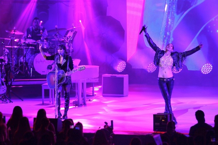 Las Hermanas Hanna y Ashley, quienes conforman el dueto Ha*Ash, tenían muchas ganas de cantar en Guadalajara porque saben que el público las quiere y las aplaude cada que se presentan en la ciudad. Y así sucedió este jueves por la noche cuando las llamadas "Reina del sold out" se presentaron ante nueve mil personas en el Auditorio Telmex como parte de su gira "Mi salida contigo". Este viernes también cantan en el mismo inmueble.Previamente a su salida al escenario, la encargada de calentar los motores de la velada fue Ale Zèguer, quien compartió que estuvo componiendo canciones con las Ha*Ash para el disco que recién publicaron el 2 de septiembre, "Haashtag". "Ellas son el tipo de artistas que vale la pena conocer. Son tan buenas amigas", dijo.Hanna y Ashley comenzaron su concierto minutos antes de las 20:30 horas para entonar justamente los temas de su nuevo disco, por ejemplo: "Lo que un hombre debería saber", "Ojalá" y "Dos copas de más"."Me duele la cara de tanto sonreír de lo mucho que estábamos esperando este momento. Esta gira es nueva, con historias nuevas. Guadalajara los amamos un montón... ¡los extrañamos!", dijo Hanna."Los tapatíos son lo máximo. Gracias por dejarnos casi arrancar la gira aquí. Tenemos más canciones de amor de lo normal, pero también para cantarles a los (desamores)", refirió Ashley, para interpretar después el tema "Demasiado para ti", dedica a un ex amor. Y luego se arrancaron las Has*Ash con "Supongo que lo sabes". Un momento divertido fue cuando las dos hermanas se pusieron el velo de novia para entonar "Eso na va a suceder", uno de los temas más coreados, de hecho el público siempre estuvo entregado a las cantantes, en su mayoría chicas de todas las edades.El escenario destacó por impecables visuales vívidos y la banda que acompañó al dueto se destacó por su excelente destreza melódica. El concierto continuó con un repertorio de baladas que han hecho famosas las hermanas y el público les correspondió entonándolas a todo pulmón.Hanna también es excelente músico, demostrando su talento en la guitarra y el piano. La cereza del pastel para cerrar con broche de oro fueron los temas "No te quiero nada", "Qué hago yo" y "Odio amarte". CT