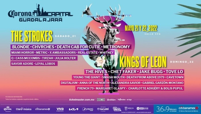 Este jueves Ocesa reveló el line up oficial para el Corona Capital Guadalajara 2022, que se celebrará los días 21 y 22 de mayo. Los headliners de esta edición se mantienen desde su cancelación en 2021, según los organizadores. Se trata de Kings of Leon y The Strokes.Si eres de los fanáticos de la música y no te quieres perder a las bandas del Corona Capital 2022, aquí te compartimos los precios:Abono General:Boleto General por día:Abono Comfort Pass:Comfort Pass por día:Abono Plus:Boleto Plus por día:Ocesa recordó que los boletos adquiridos en la edición 2020 podrán ser usados para esta nueva entrega. Asimismo, los fanáticos que deseen asistir a los conciertos, podrán comprarlos en venta general el próximo 25 de octubre a partir de las 11:00 horas en el sistema Ticketmaster.AC