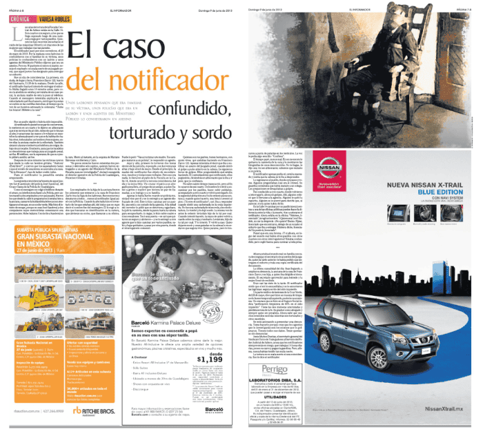 El domingo y ayer las calles de Guadalajara se convirtieron en un set cinematográfico, y es que el director Carlos Quiroz filmó el teaser —corto avance de una cinta— de lo que será su ópera prima que llevará por nombre “El Notificador”, “de la cual esperamos arrancar el rodaje en octubre. Por lo pronto levantamos imágenes para el teaser; serán algunas escenas claves de la cinta y otras más de presentación de personajes y circunstancias del filme”, comentó en entrevista Quiroz. “El largo está basado, en la parte esencial, en una crónica de Vanesa Robles que se publicó en EL INFORMADOR —el 9 de julio del 2013 titulada “El caso del notificador confundido, torturado y sordo”—, la cual fue una historia que me impresionó mucho y me llevó a realizar el esbozo de una idea que al paso de cuatro años se convirtió ya en un guion”.El cineasta adelanta que se trata de una historia coral, “sí tenemos un protagonista, pero al mismo tiempo tenemos las voces de otros personajes”. Entre los actores que participarán se encuentran: Said Sandoval (“Club de Cuervos”), Andrés Montiel, Héctor Molina, Ana Maciel, entre varios más. “Todos estos actores son amigos y les encantó la historia”, agrega.—¿De qué va el filme? —Básicamente la historia trata de un asalto perfecto, un robo ideal que de pronto se ve truncado por la presencia de un inocente notificador que sólo estaba haciendo su trabajo… A lo largo de la cinta, se verá que cada personaje va a enfrentar de una forma diferente a la justicia, recibiendo lo que cada uno merece.—¿Lo anterior, nos lleva a pensar que se tratará de un thriller policiaco?—En esta cinta tenemos a los ladrones y el papel de un policía corrupto… Sin embargo, yo no la encasillaría en ningún género, si tuviera que hacerlo diría que es un drama policiaco, pero no quiero encasillarla, porque la historia no se centra tanto en el evento sino en el contexto.—¿Es una historia más íntima?—En el filme presentamos la realidad que estamos viviendo: hay miedo en la población, hay miedo a la inseguridad, a la autoridad, al crimen... Sin embargo, la historia se centra más en la humanidad y en las determinaciones de las personas y cómo éstas toman una u otra decisión; incluso, cuando el destino te coloca en el último lugar donde pensaste estar. Lo que intento es que quede al descubierto el lado humano, en el que nadie es tan bueno ni tal malo y son las circunstancias la que te van conduciendo para que las cosas ocurran.Cabe señalar que la cinta, producida por el sindicato Filmhouse y con un acuerdo comercial con Tequila Film, contará con el trabajo del cinematógrafo nicaragüense Gabriel Serra, quien estuvo nominado a un Oscar por “La Parka” en la categoría de Mejor documental corto.