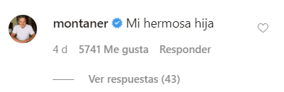 La hija de Ricardo Montaner, Evaluna, conquistó las redes sociales al compartir una fotografía donde luce un sensual bikini negro con estampado con llamas, misma a la que reaccionaron su padre y su esposo.“Me gusto”, escribió la venezolana de 22 años en la cabeza del post que tiene ciento de comentarios positivos, incluyendo el de Camilo. “Venga le digo…”, dijo.Algo que también sorprendió a los seguidores de la cantante y actriz fue la reacción de su padre, Ricardo Montaner, quien con un breve mensaje halagó a su hija.“Mi hermosa hija”, escribió y el comentario rápido recibió el apoyo de los fans con “me gusta” y algunos comentarios. Hasta el momento, la publicación cuenta con casi dos millones de “me gusta” en Instagram. Evaluna Montaner y Camilo Echeverry se casaron en febrero pasado en Miami luego de cinco años de relación, misma que ha sido bien recibida por los fans de ambos. AC