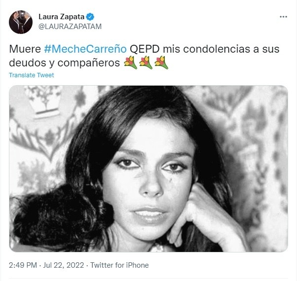 Mercedes Carreño, mejor conocida como Meche Carreño de 74 años, falleció hoy viernes en Estados Unidos debido a un cáncer de hígado, fue hospitalizada hace tres días, según reporta TV Azteca.Fue una actriz, productora y argumentista de cine, cuya época de mayor esplendor fue en la década de los 70. Es reconocida por su actuación en las películas "La Choca" y "La Otra Virginidad".Meche fue un ícono imperturbable del cine mexicano y una de las figuras más valientes de su época. "La Choca", "Damina y los hombres" y "La inocente", entre otras cintas, son algunas en las que participó no sólo como actriz, sino en algunos casos como guionista y productora.Ella se alejó de los escenarios tras perder a un hijo, se fue a Estados Unidos a dedicarse a su familia y a seguir estudiando dirección de cine.La periodista Mónica Garza y la actriz Laura Zapata, son algunas de las personas que han despedido a la actriz y productora a través de redes sociales. MA