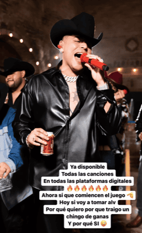 El cantante Eduin Caz, vocalista de Grupo Firme, una vez más es tema de conversación pues en las últimas horas dio a conocer a través de sus redes sociales que no pudo aguantar más tiempo sin tomar una gota de alcohol por lo que ya no seguirá con esa abstinencia. Días atrás, el vocalista presumió que tenía varias semanas sin tomar nada de bebidas alcohólicas, incluso aseguró que había cumplido un mes con el reto, y que se proponía a retomar el ejercicio, sin embargo decidió rendirse antes de tiempo."Hoy sí voy a tomar, alv, porque quiero, porque traigo un ch** de ganas y porque sí", se lee en su mensaje, el cual acompaña con una imagen de él mismo sosteniendo una cerveza, dicha imagen forma parte de un video de sus nuevas canciones.La banda, que arrancó hoy con la venta de los boletos para el cierre de su gira en el Foro Sol, estrenó en las últimas horas varias canciones, como parte de su nuevo disco "Puras pa' pistear", como: "Borrón y cuenta nueva", "Cómo le digo", "Señorita", "Al despertar", "Aquí no es", "Me pierde por wey" y "Falsa alarma".En los videos de estos temas, los integrantes de Grupo Firme aparecen tomando cerveza y otro tipo de bebidas alcohólicas en botella.A inicios de este año, Eduin Caz tuvo una crisis de salud porque se le complicó la hernia hiatal que padece; se dijo que podría perder la voz por combinar el alcohol con dicha hernia que en ese momento lo llevó al hospital.Aunque el cantante de 28 ha reconocido que hay un equilibrio en su vida, en redes cuestionan la forma de beber de los integrantes de Grupo Firme, y es común ver entre los comentarios que aplauden a Eduin, recomendaciones para que se cuide y deje de lado "la vida loca".MF